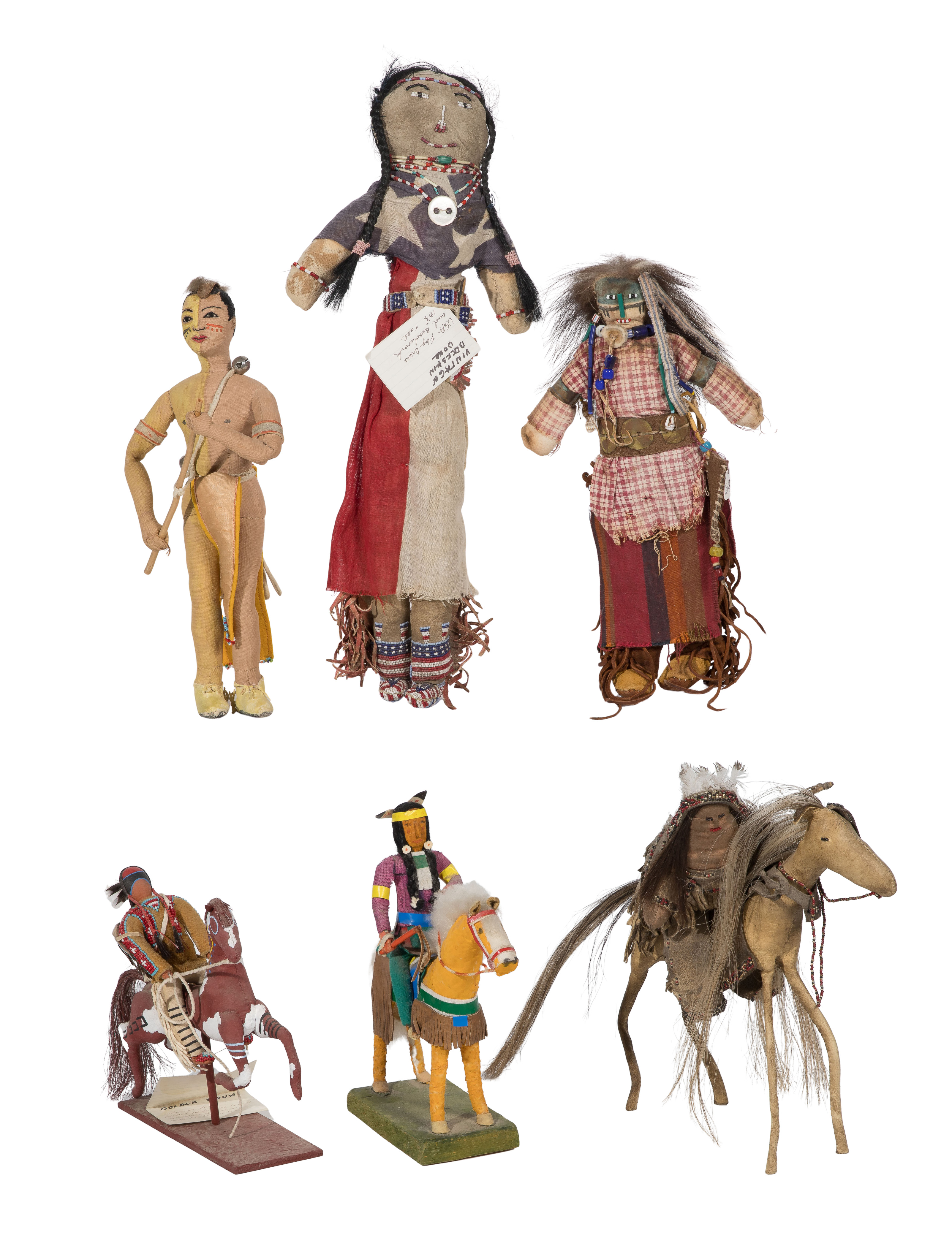 (6) items of various shapes, sizes and materials, some on horseback, from tribes such as The Oglala Sioux, The Blackfeet and South Eastern