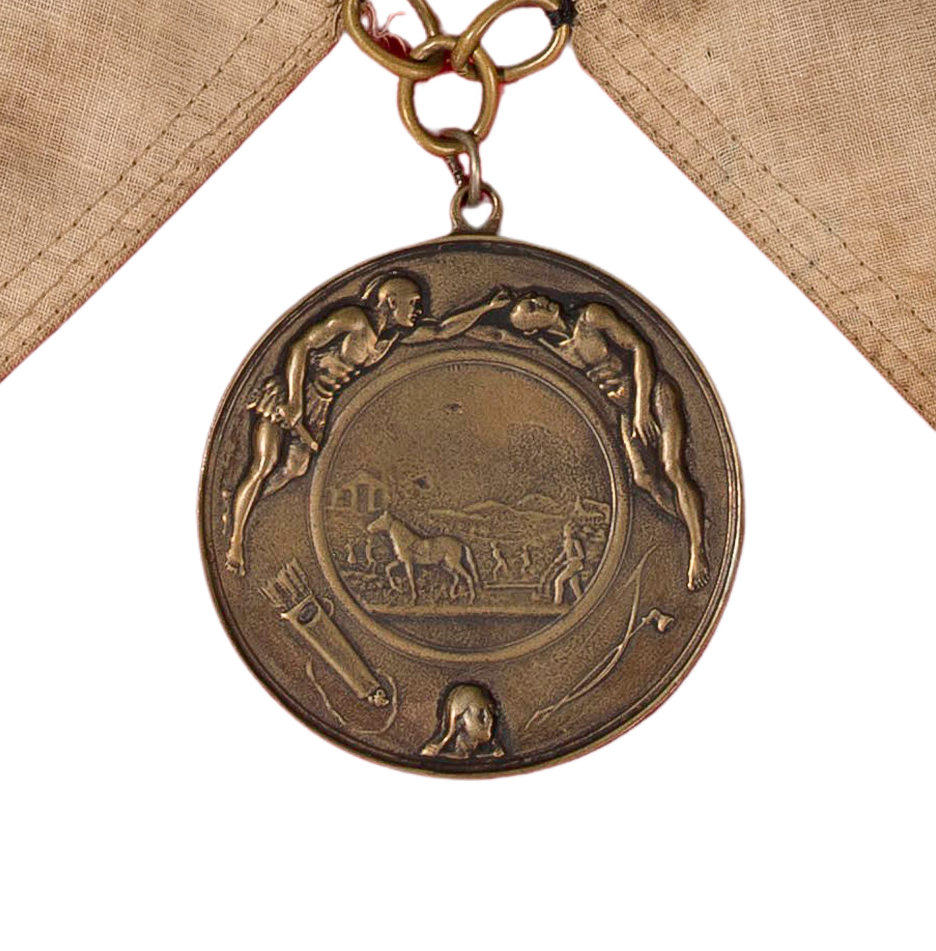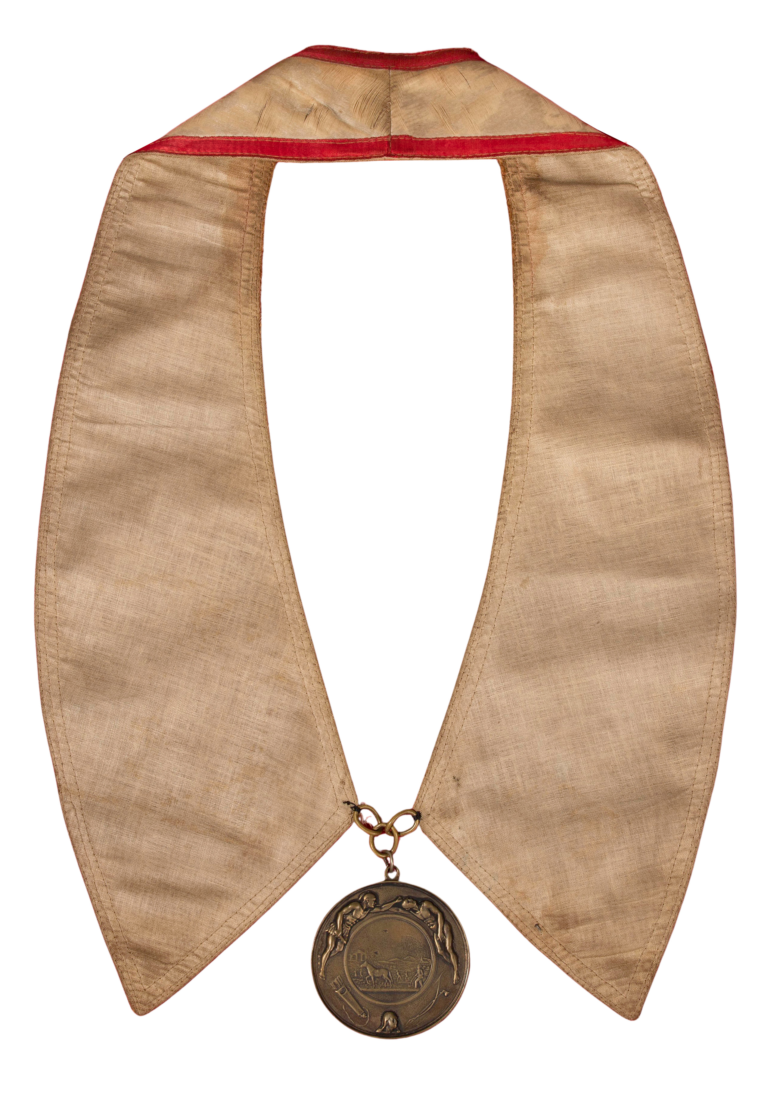 overall light wear to medals, collars having heavy wear, fraying, fading and dirt accumulation