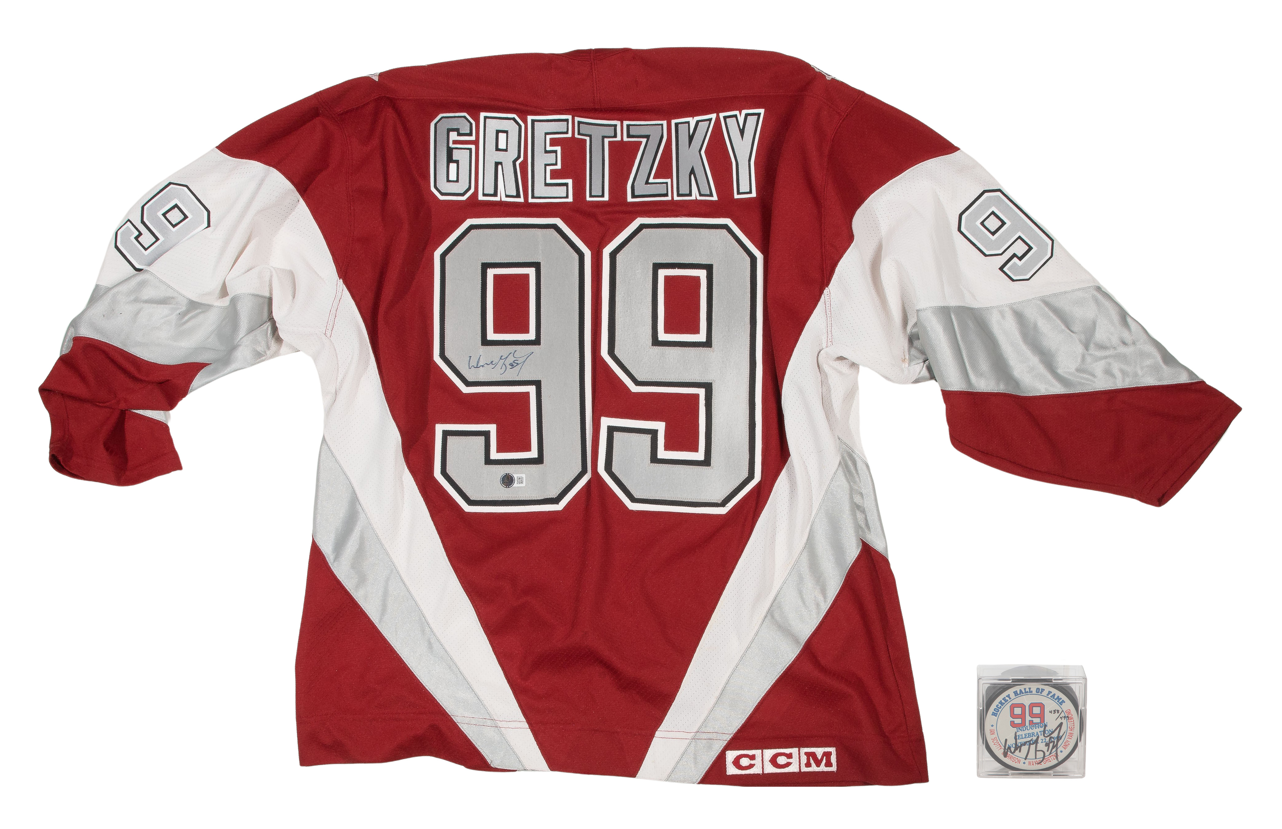 (2) total items including a signed CCM jersey having Beckett COA; together with an induction to the Hockey Hall of fame puck, signed having hologram in an acrylic case