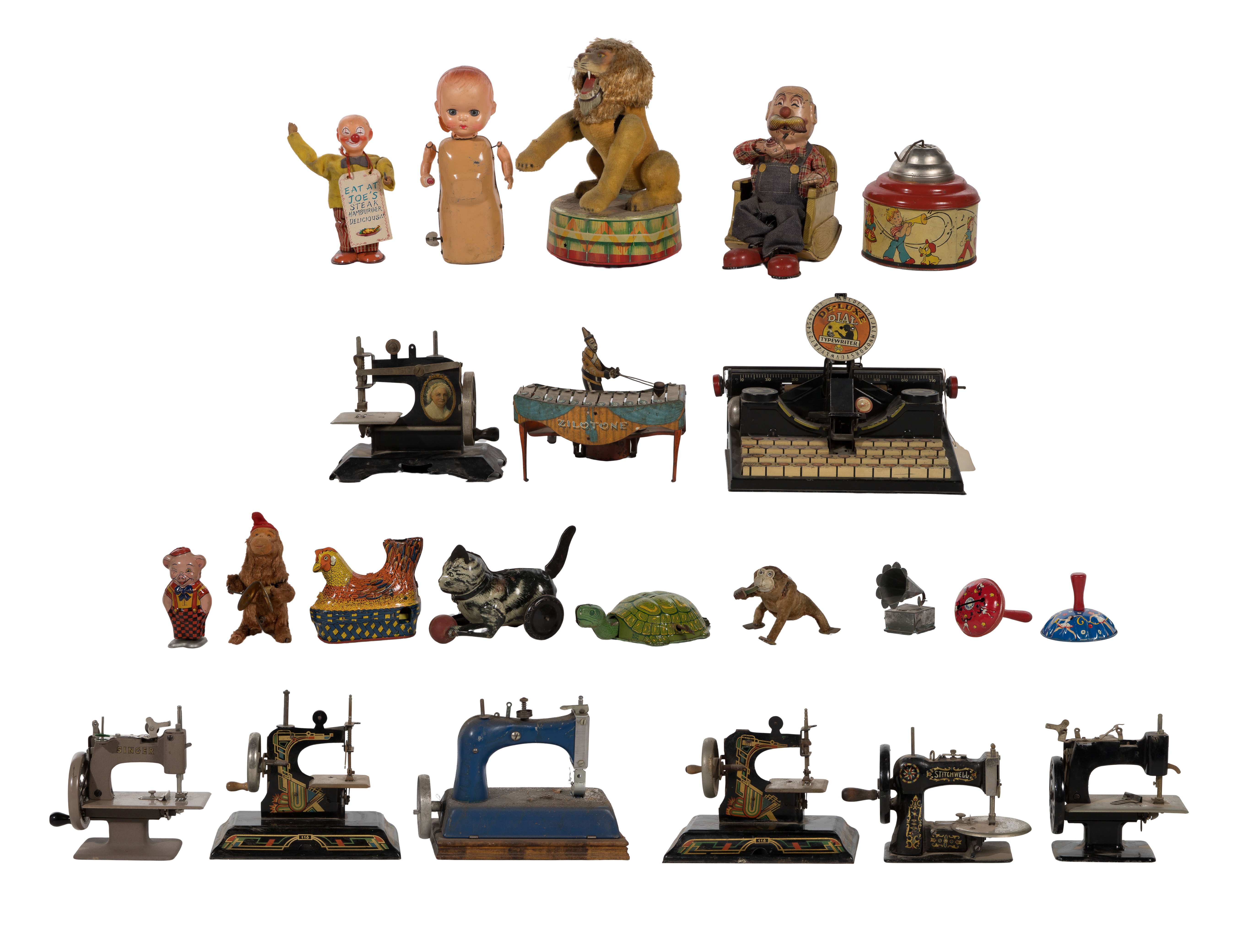 (23) items including animals, clowns, babies, sewing machines, a typewriter and a xylophone, some wind-up