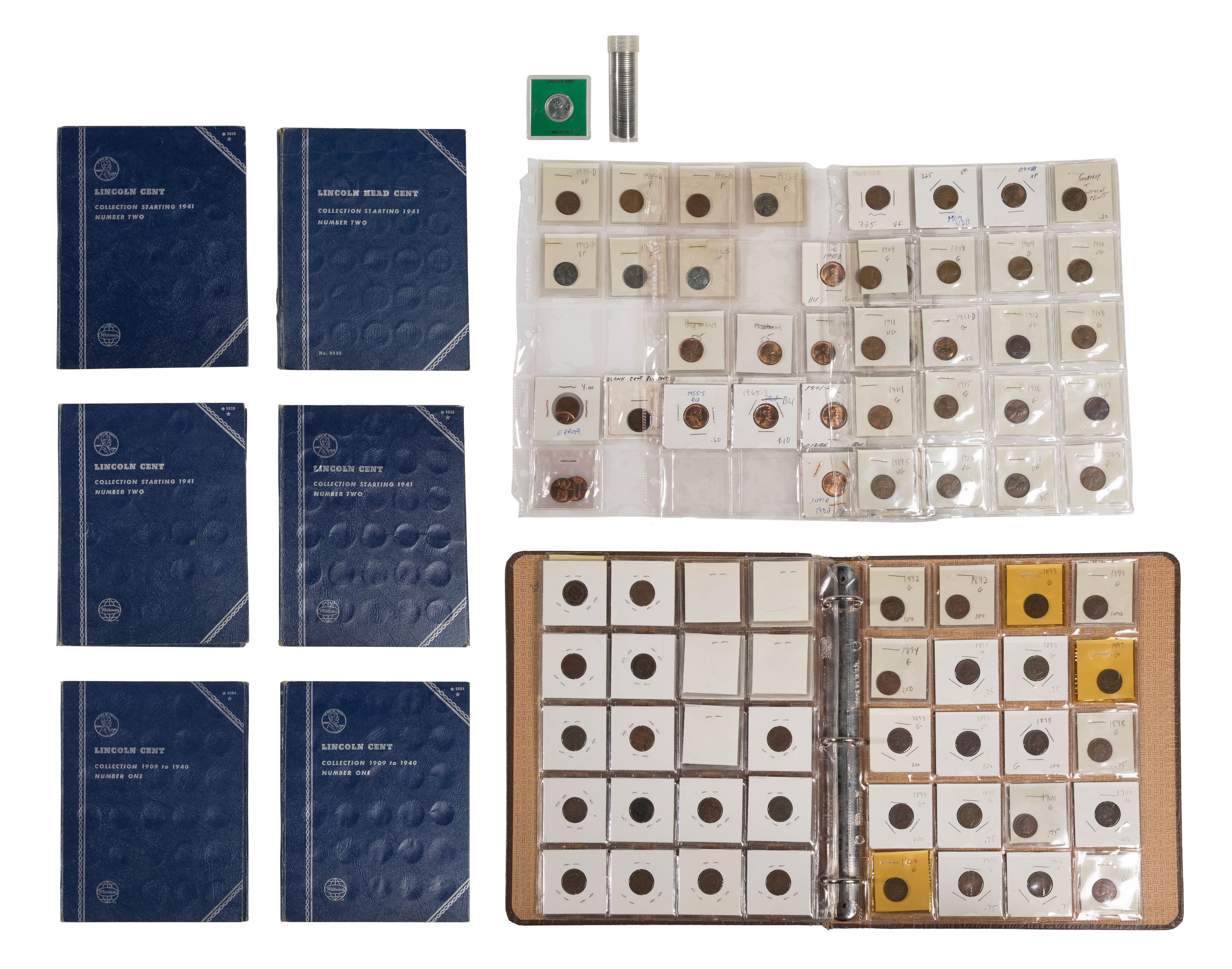 Including (70) Indian 1c, (6) Wheat 1c, partial Whitman folders and approximately (100) Wheat and Memorial 1c