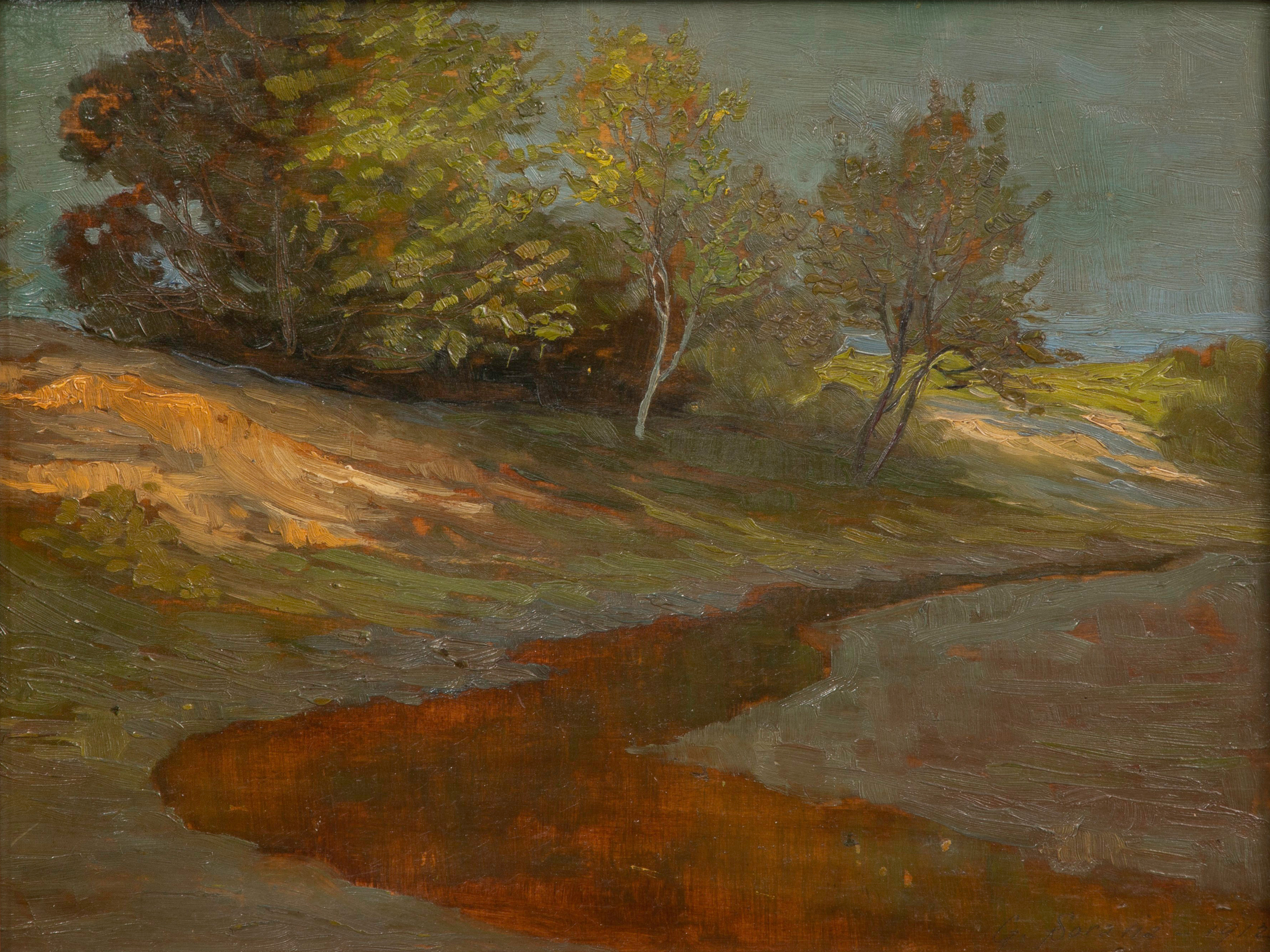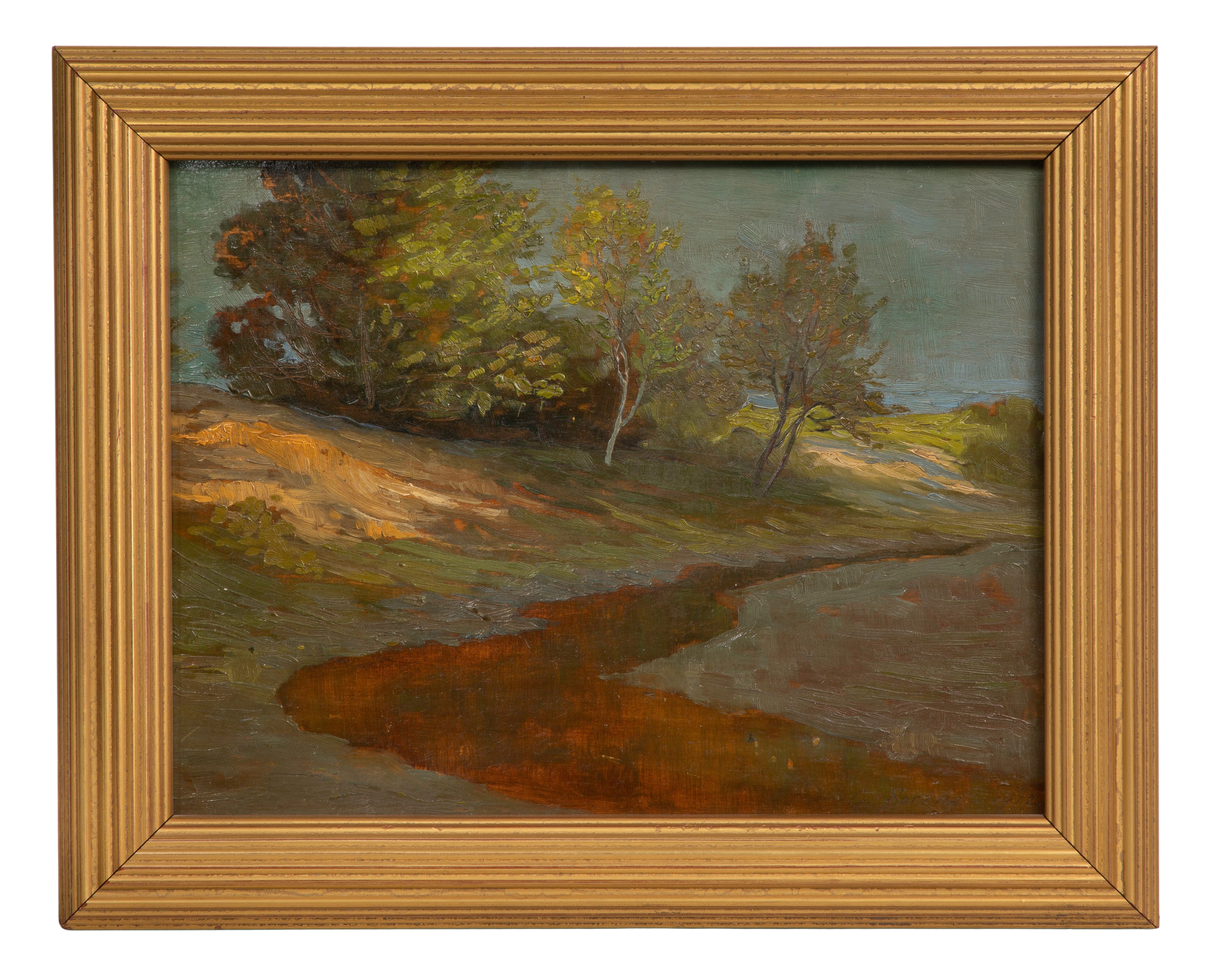 1912, signed lower right, depicting a landscape, in a gold-tone gadrooned wood frame
