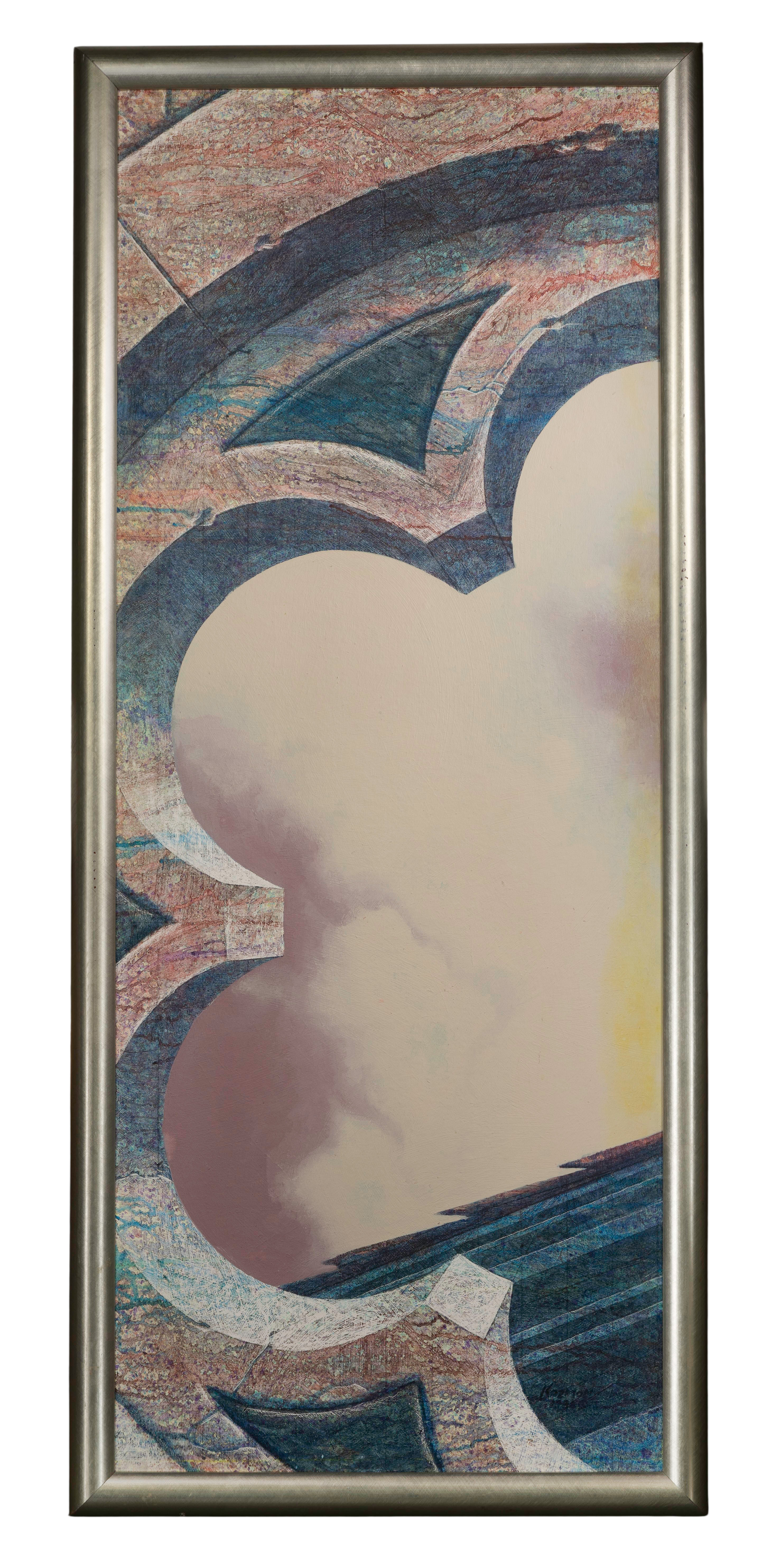 Signed, illegibly dated, depicting architectural elements, in silver-tone wood frame