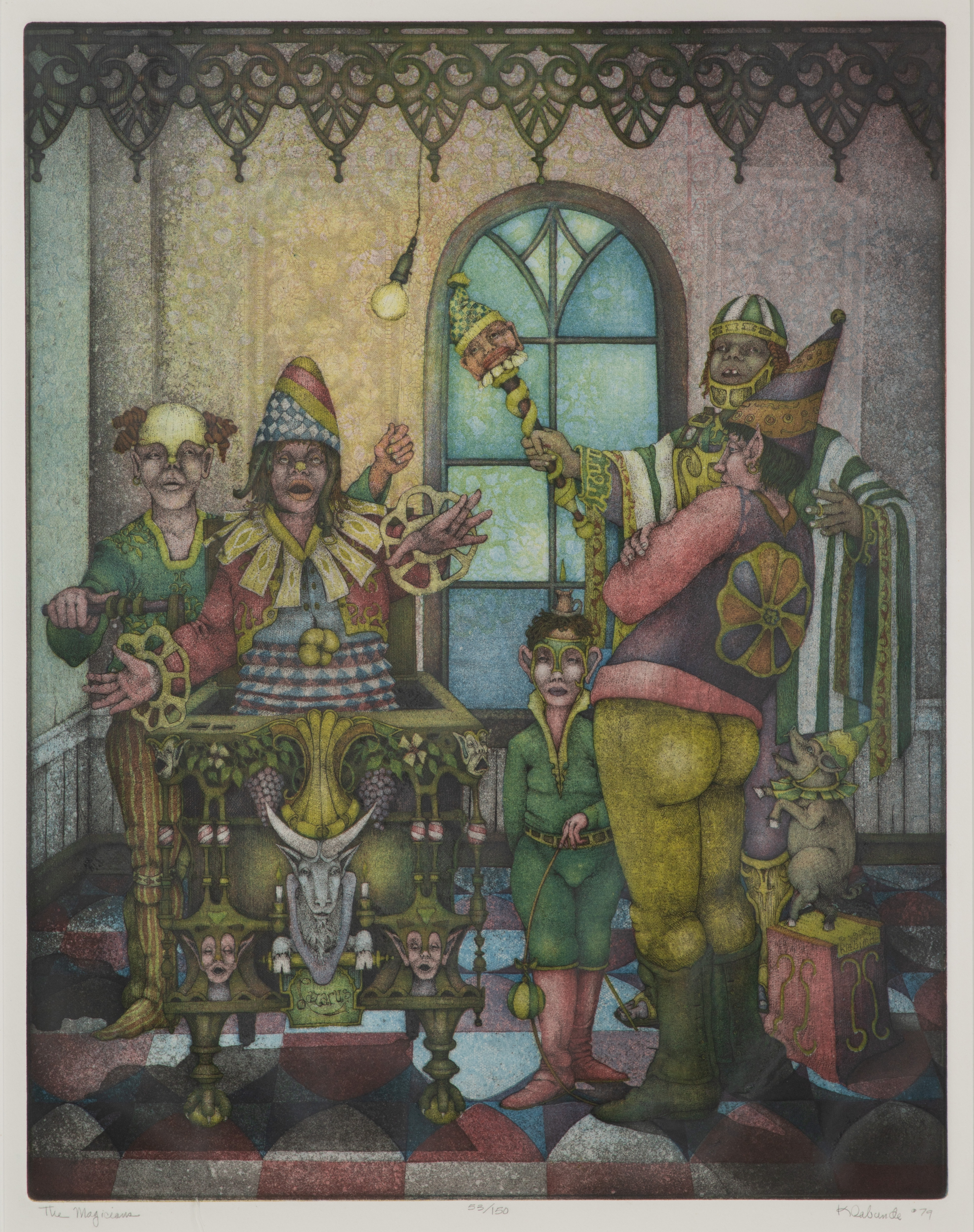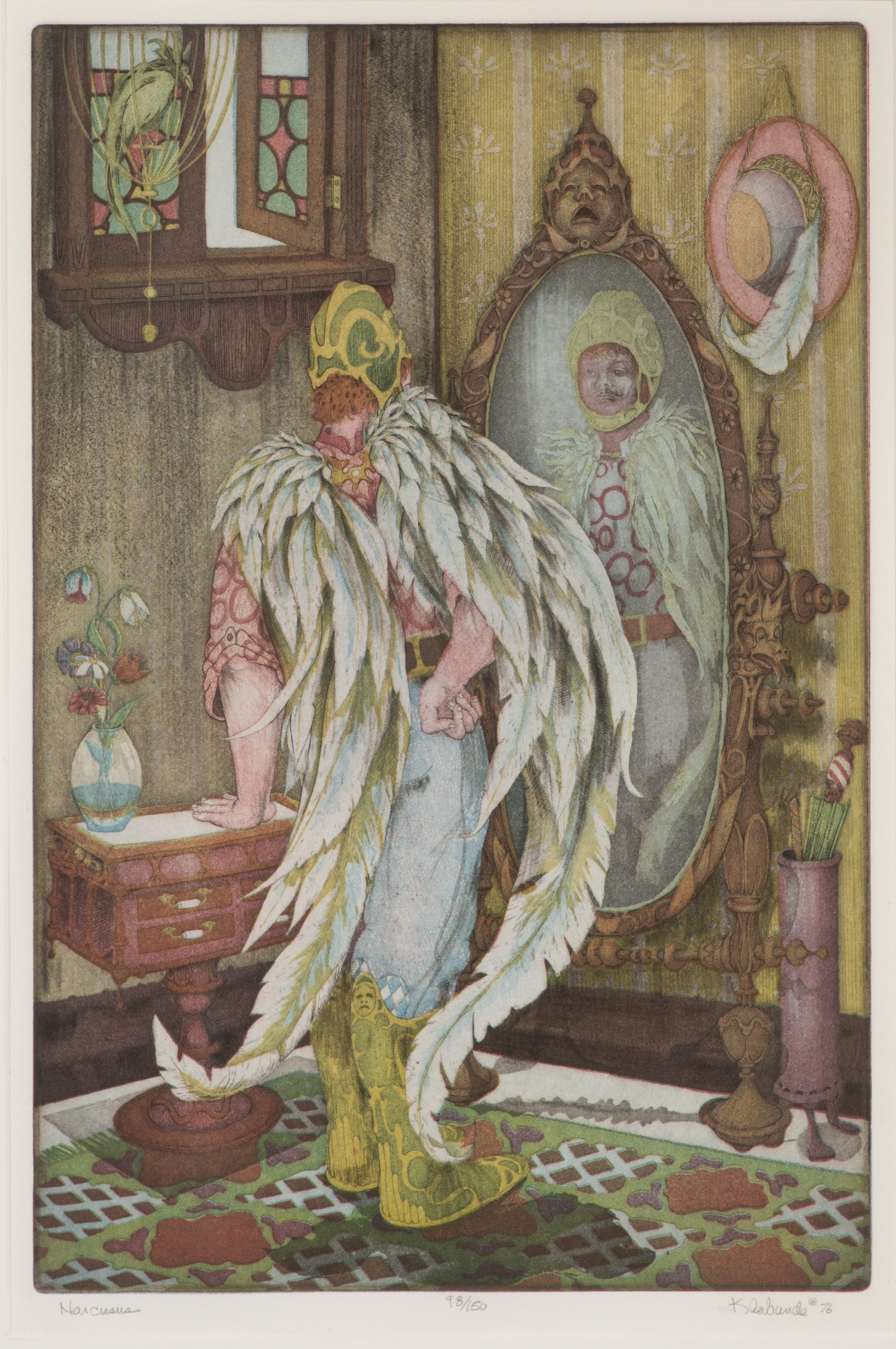 (3) items, all pencil dated, signed, numbered and titled lower margins, including 1976 ‘Narcissus’ #98/150, 1979 ‘The Magicians’ #53/150 and 1980 ‘Memories of Bruce’ #17/150, all matted behind glass in metal frames, (2) having Bibo Gallery for Art, Peoria, Illinois foil stickers verso
