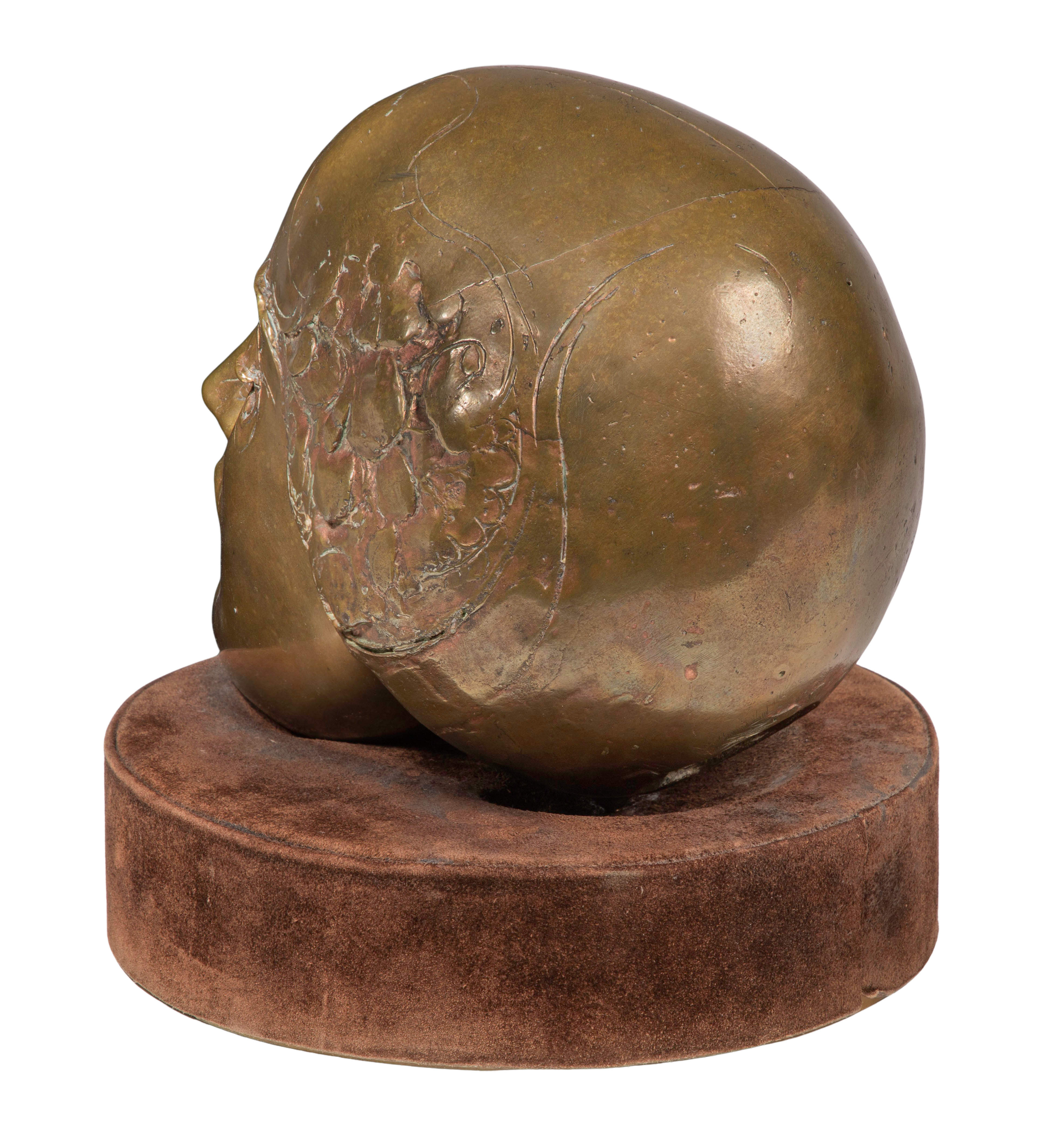 1972, signed on right side, titled inside base, a bust on a round suede covered acrylic base