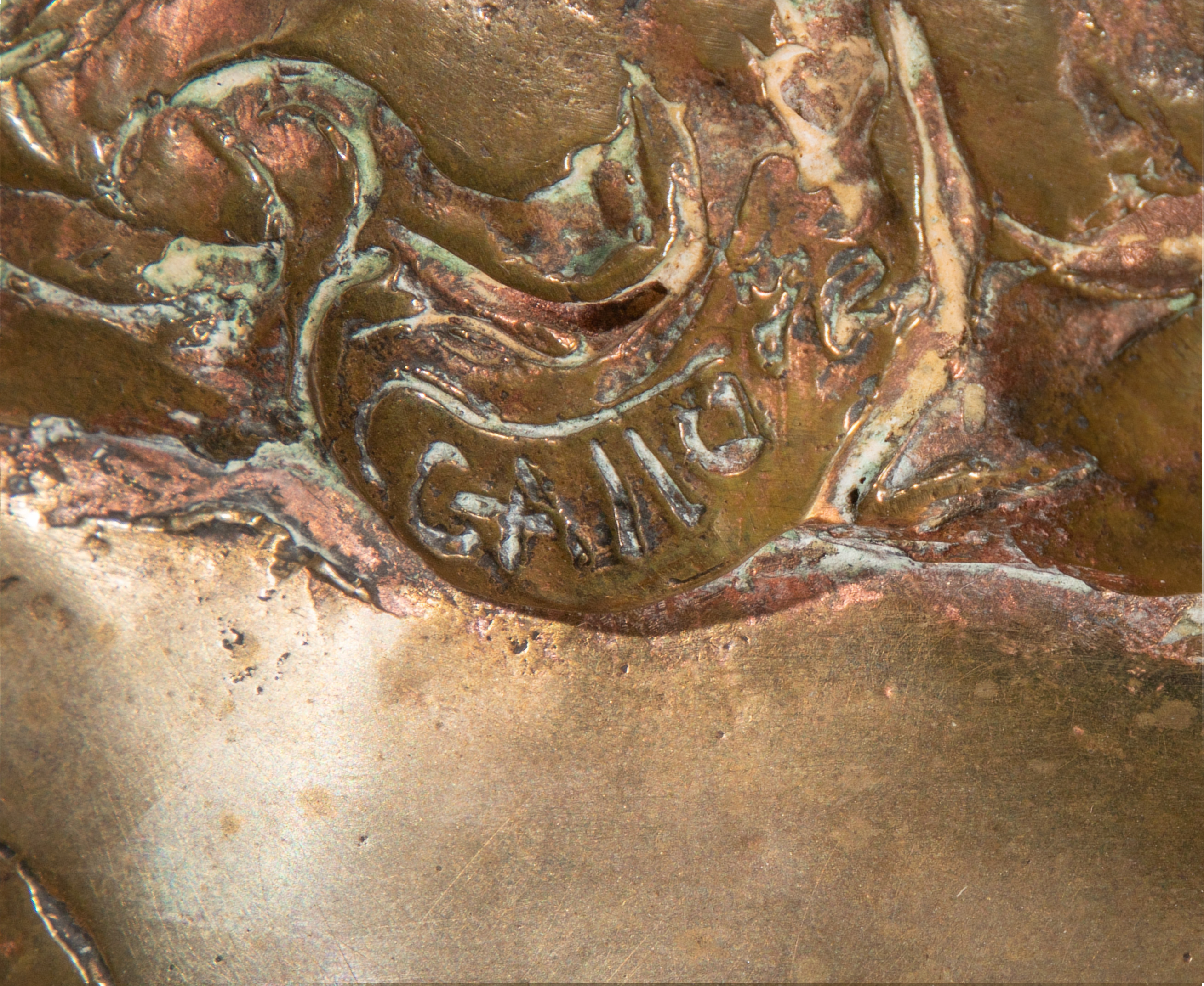 light dirt accumulation, minor surface scratches, verdigris