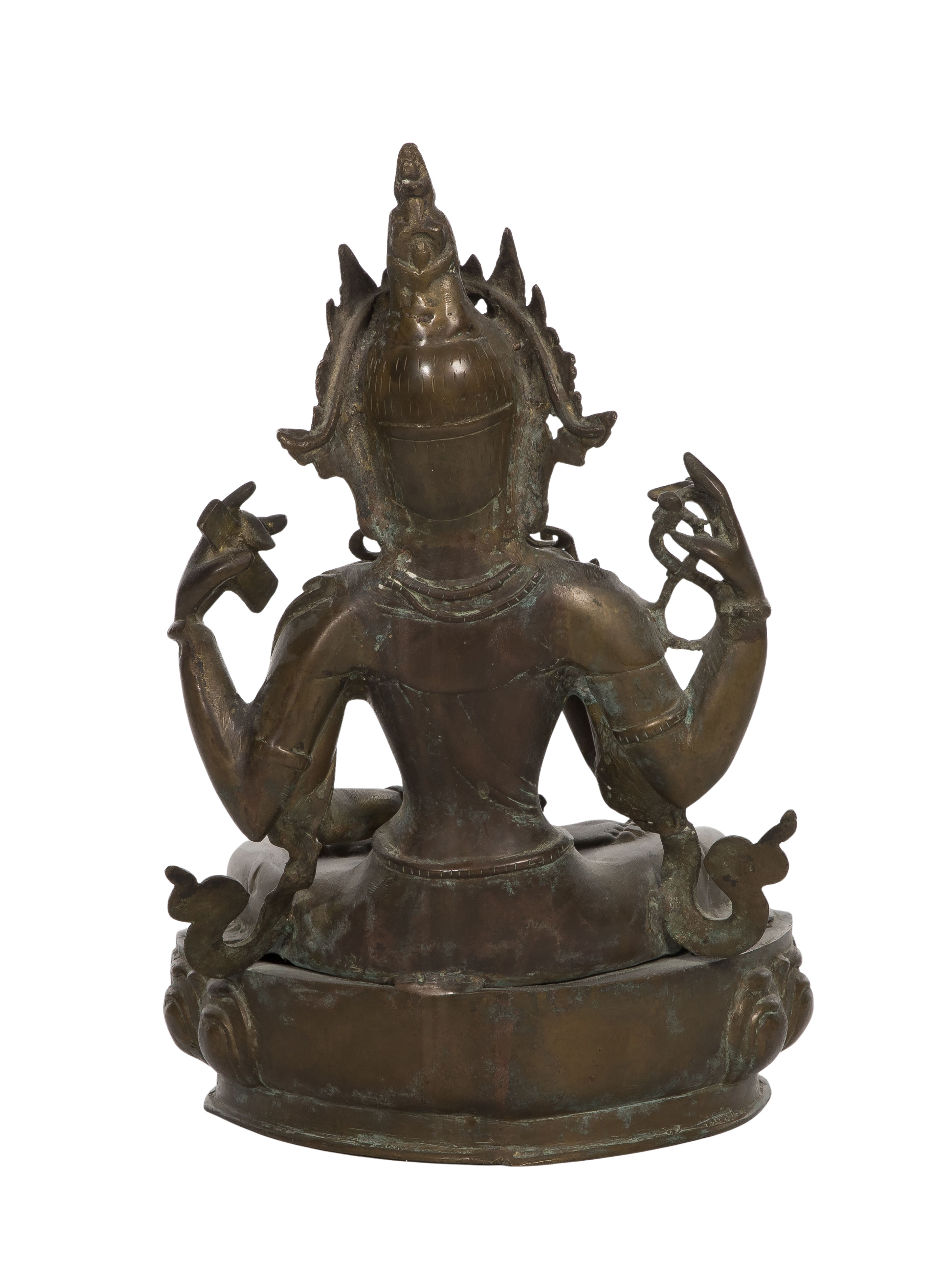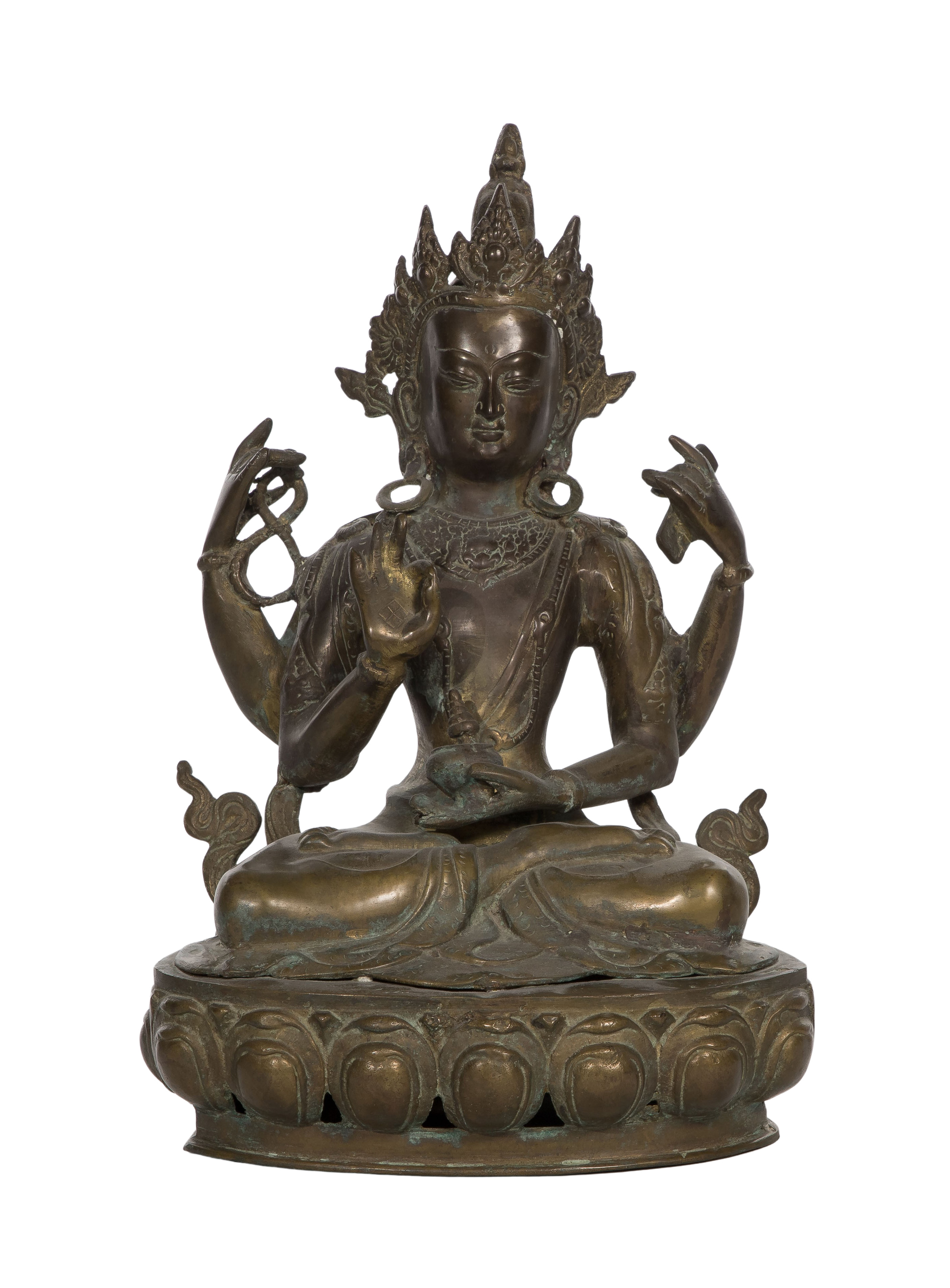 Multi-armed deity seated on a pierced lotus base, likely Avalokiteshvara