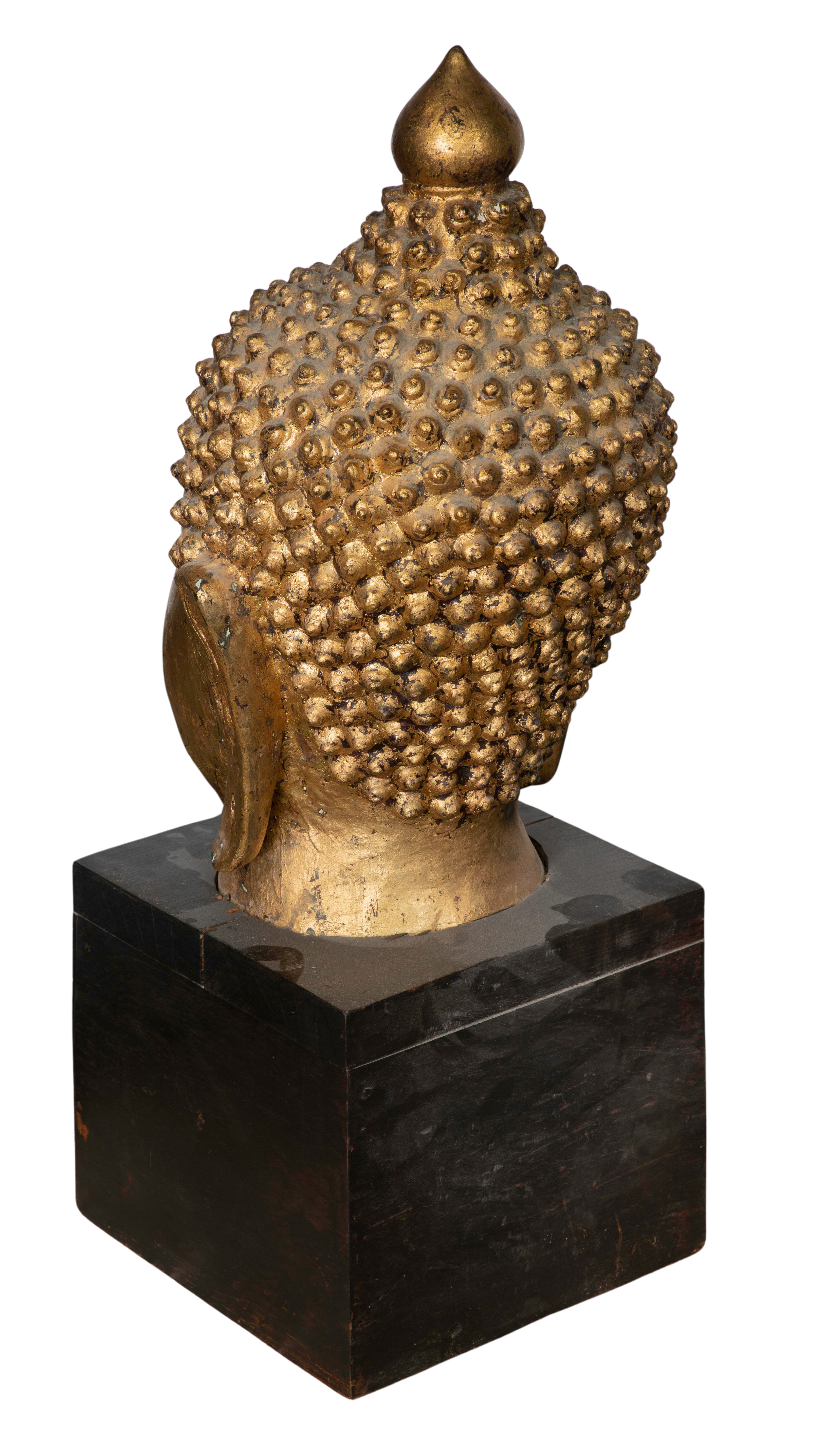 Thai Lacquered Metal Buddha Head Statue