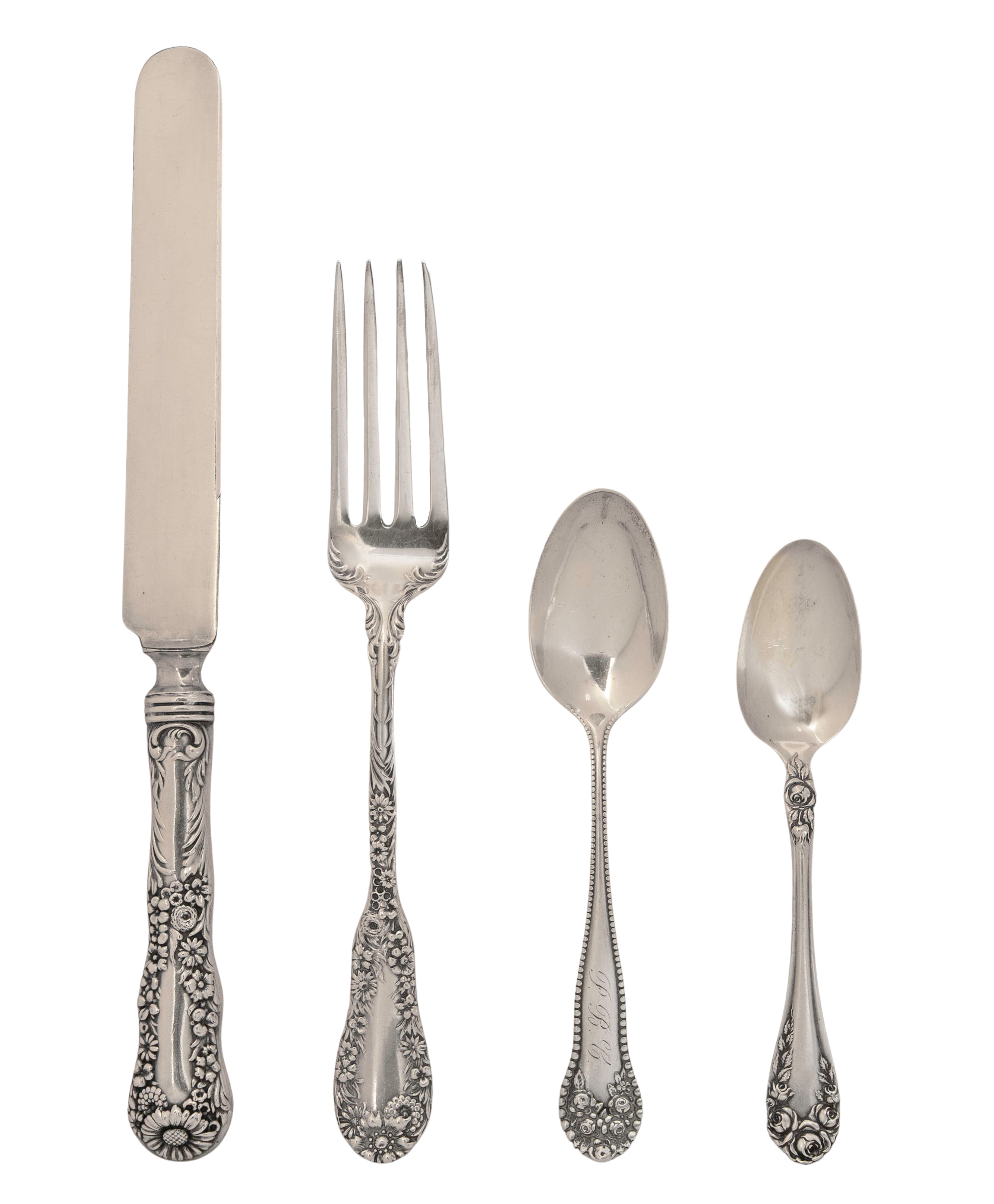 (30) items from various sets including (6) 9 3/4-inch old French knives, (6) 8-inch dinner forks and (18) 5 1/4-inch teaspoons (all marked ‘sterling’)