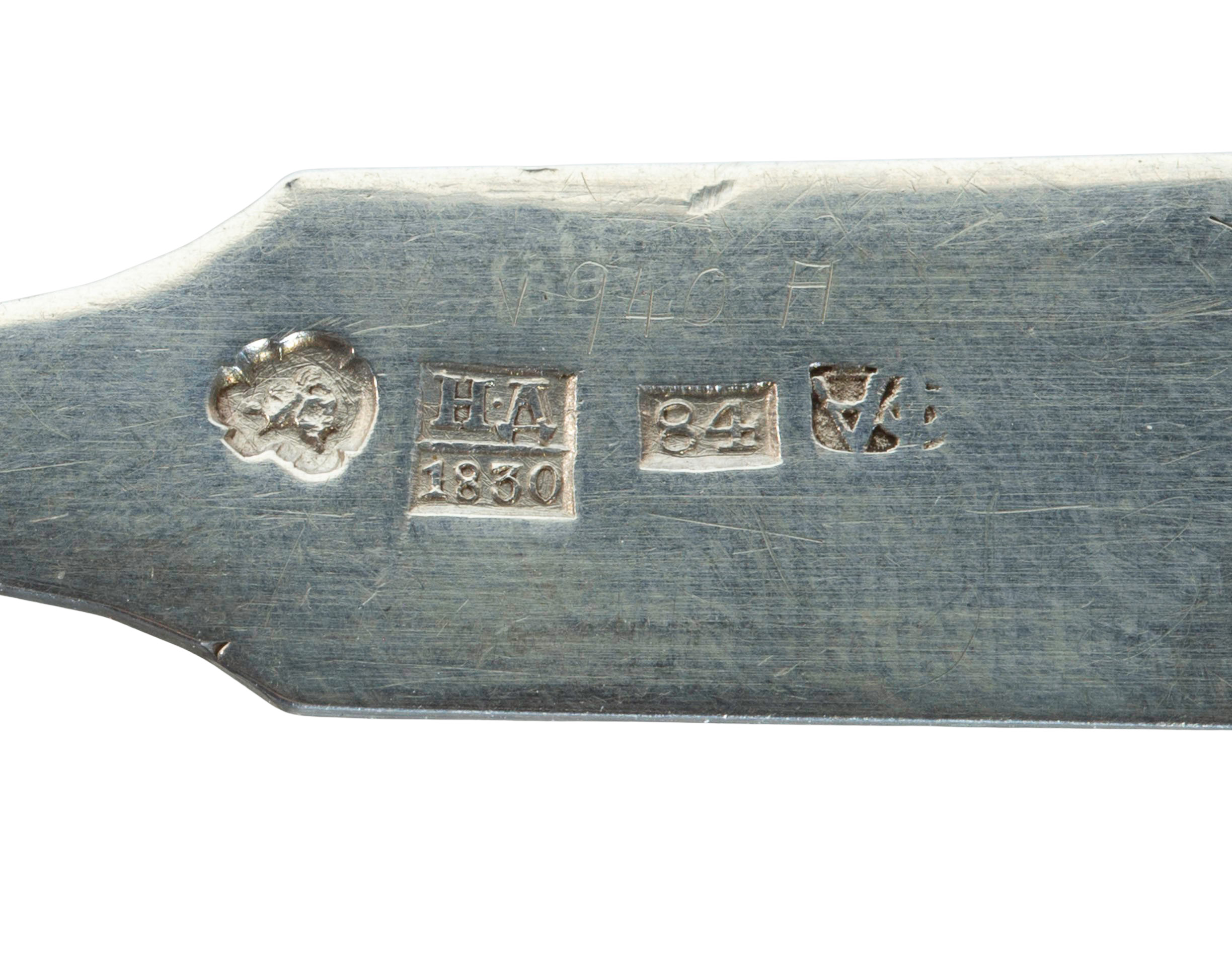 (3) items including a cased set of six demitasse spoons, a slotted spoon (marked Russian ’84’) and a footed card tray marked West and Sons (most marked 0.900 to 0.830 silver)