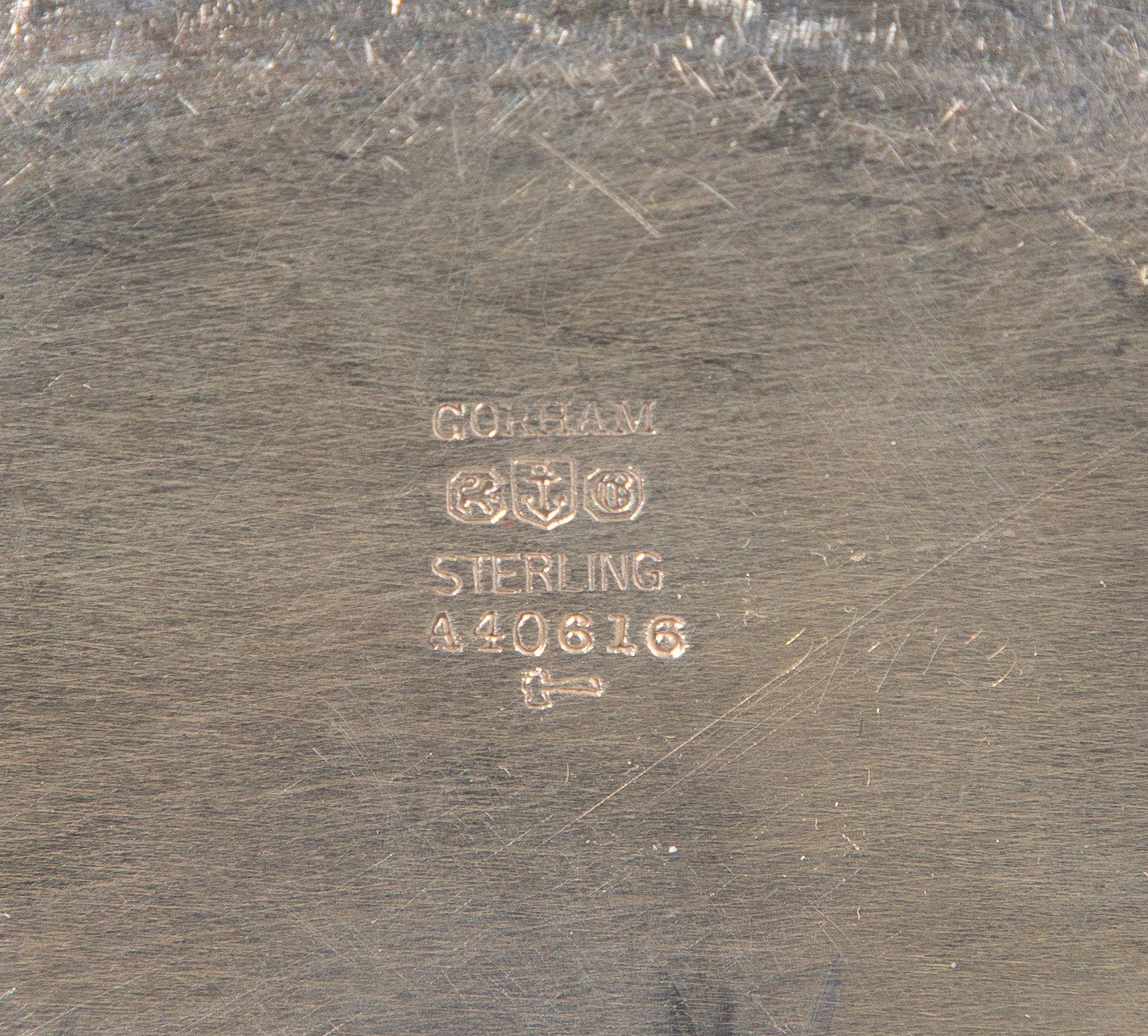 Oval scalloped bowl, pattern #A40616 (marked ‘sterling’)