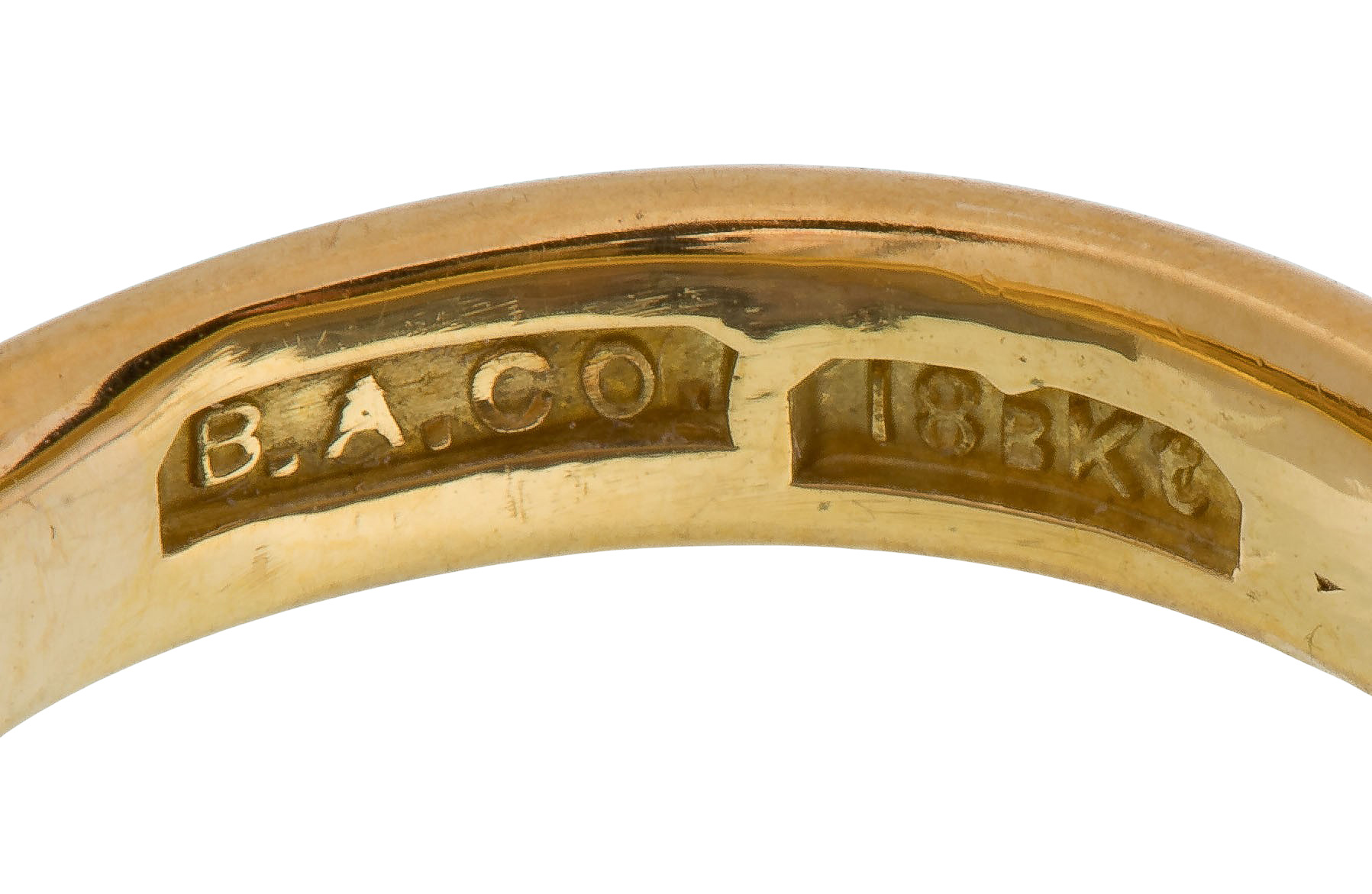(2) items including a band ring and pair of pierced, hinged hoop earrings (marked ‘750’ / ’18k’)
