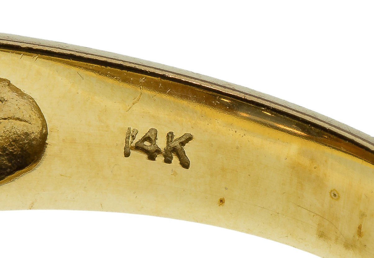 (3) items including an approximately 18 x 12mm hexagonal cut citrine in a horizontal layout, an approximately 13 x 12mm rounded cut citrine multi-faceted in raised setting and an approximately 11 x 9mm oval cut citrine in a free form setting (all marked ’14k’)