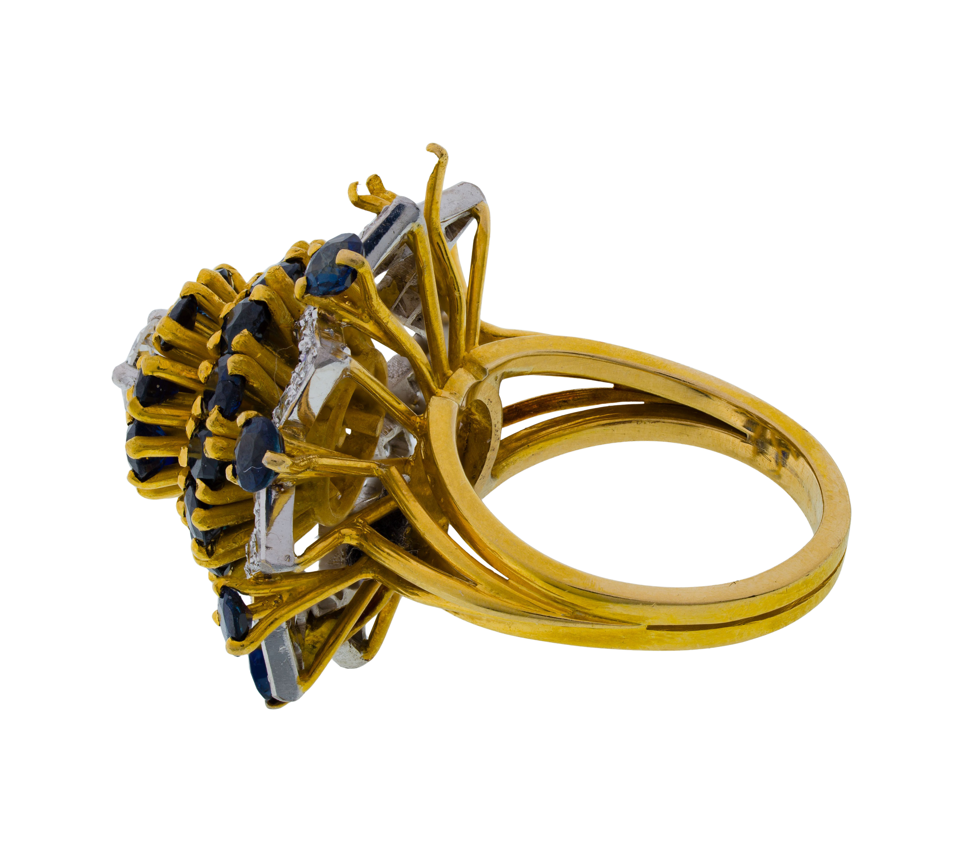 18k Yellow Gold, Sapphire and Diamond Cocktail Ring