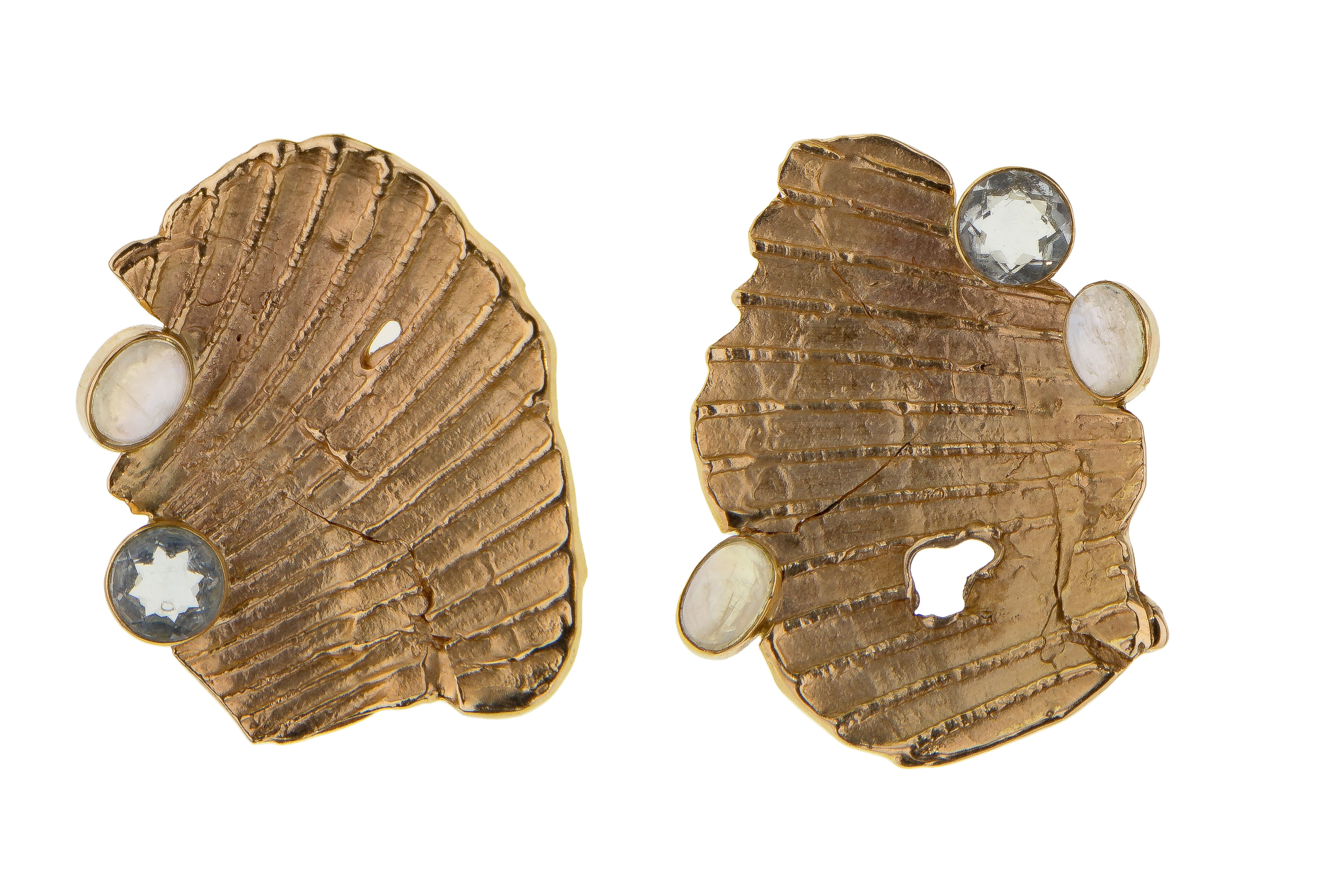 Eve Alfille 14k Yellow Gold, Moonstone and Aquamarine Clip-on Earrings