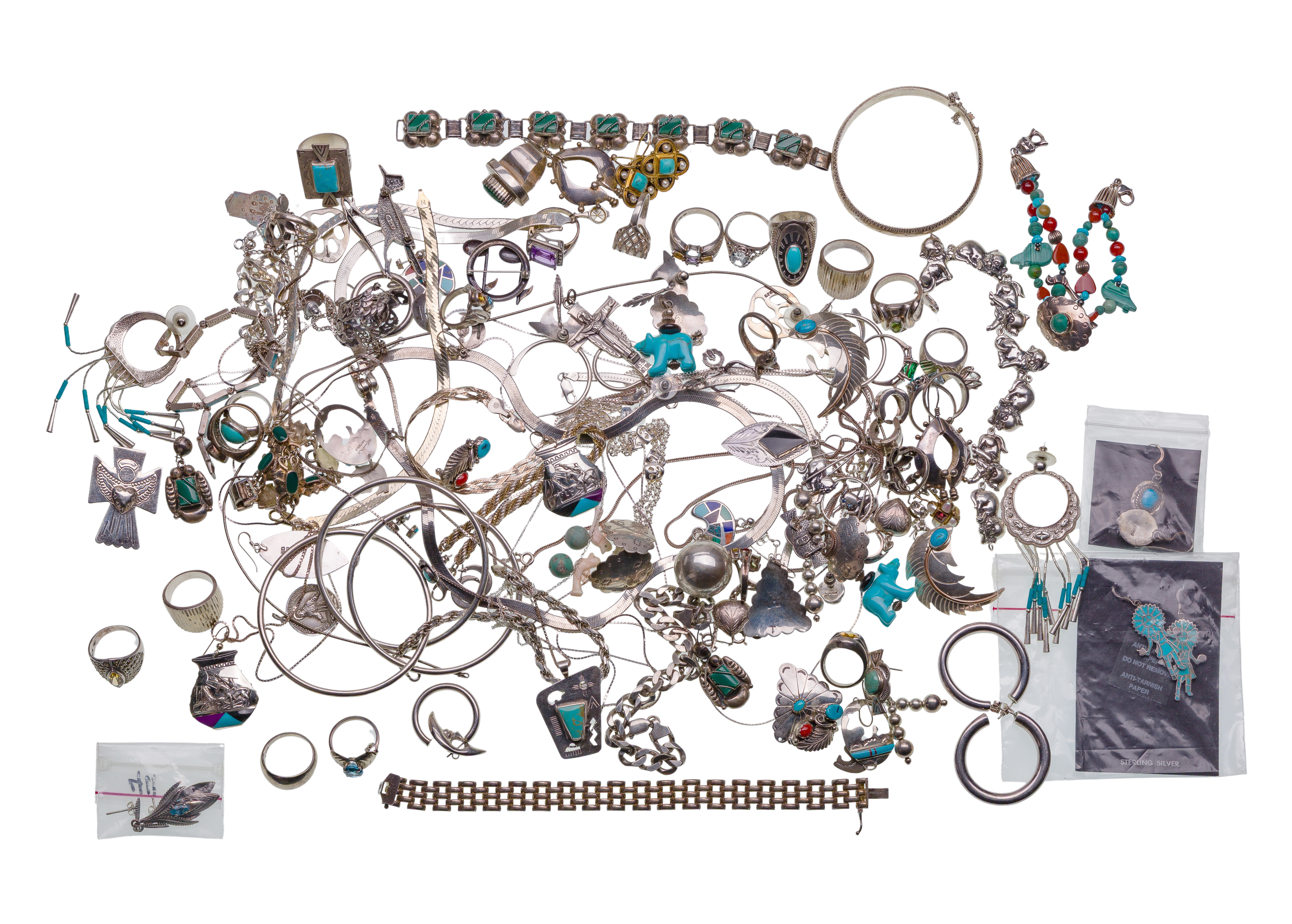 Including earrings, rings, necklaces, bracelets, pendants and pins, some having stones (all marked ‘925’ / ‘sterling’)