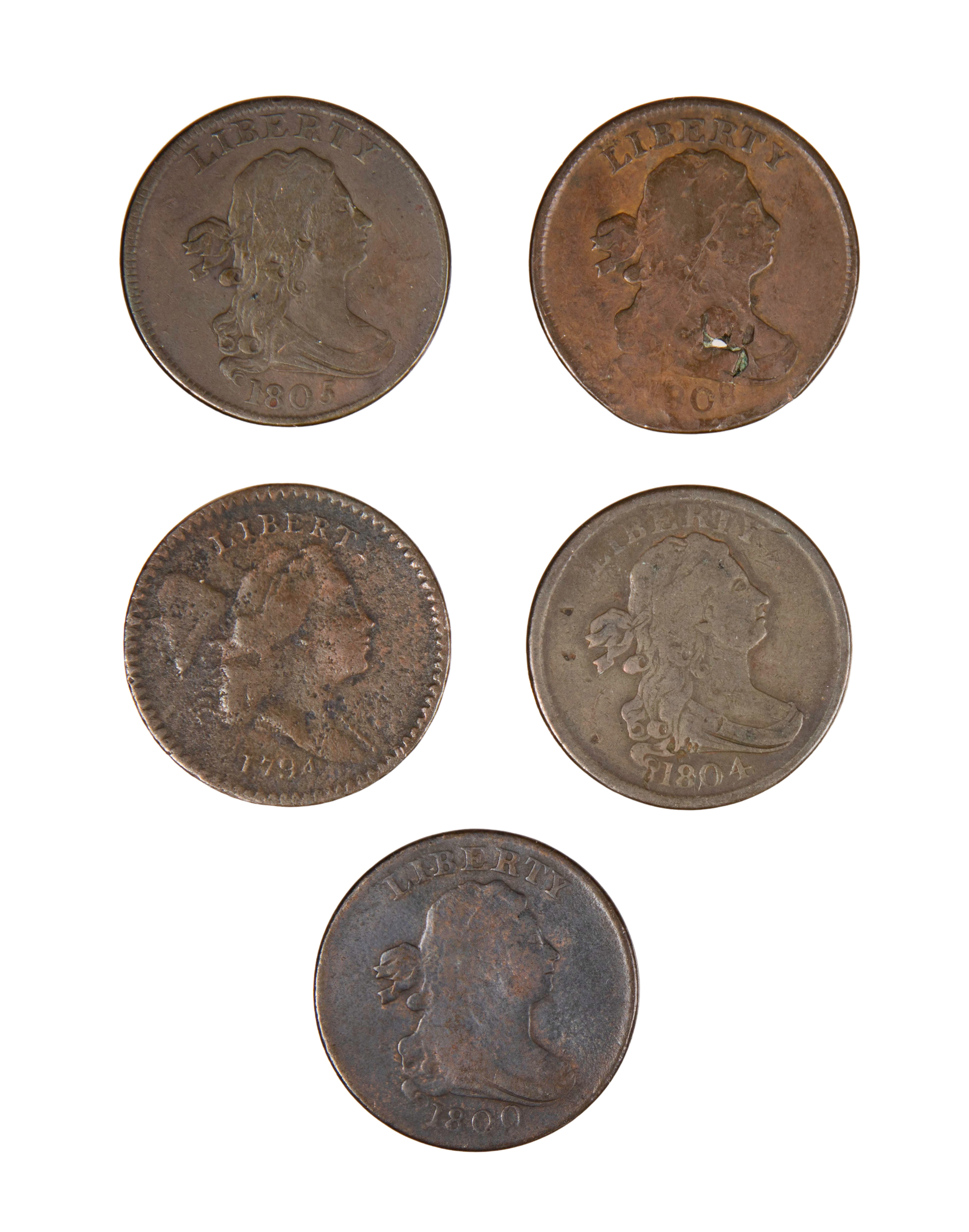 (5) coins including 1794, 1800, 1804, 1805 and 1808