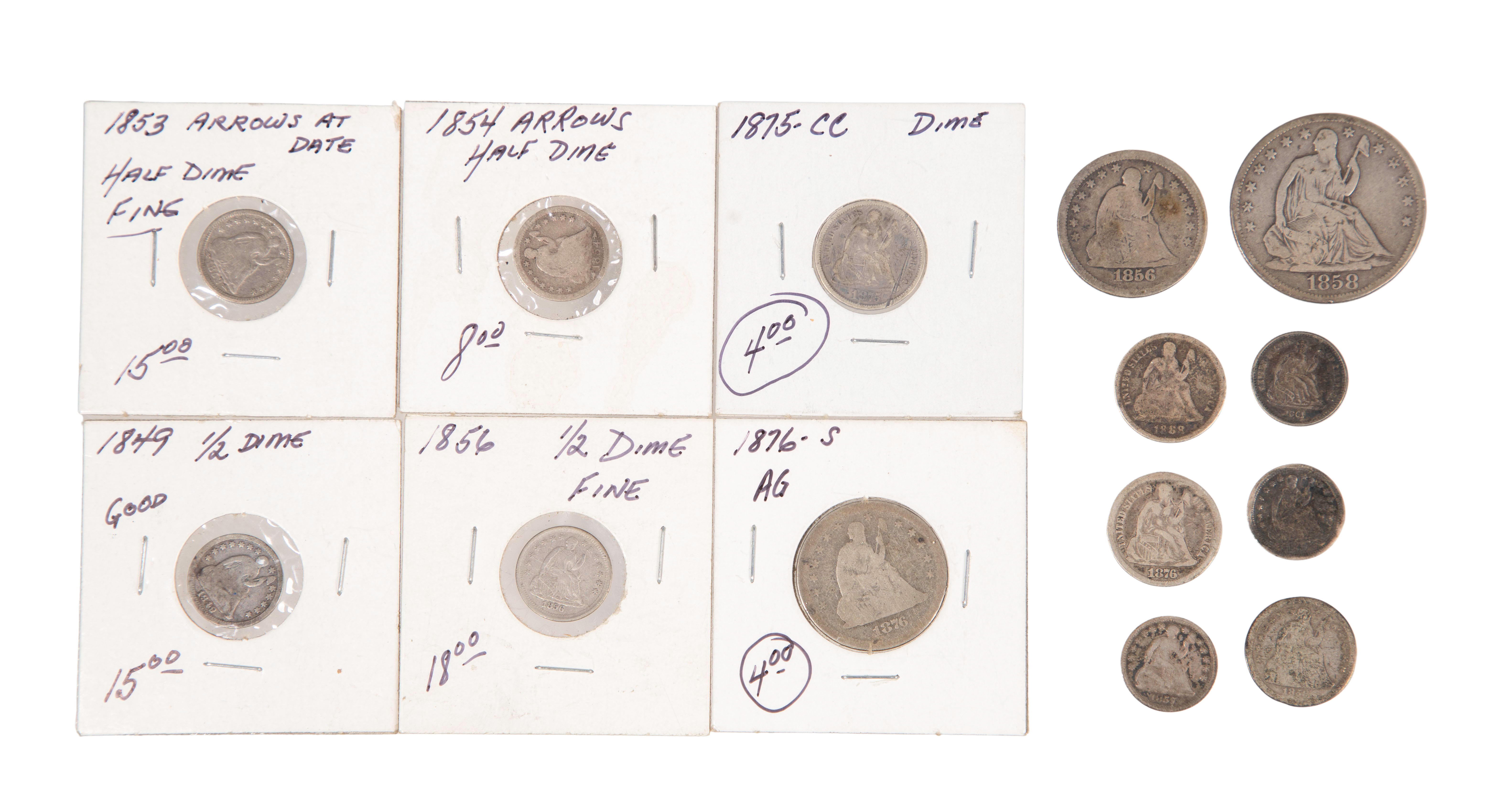 (14) coins including a 50c, (2) 25c, (4) 10c and (7) half dimes