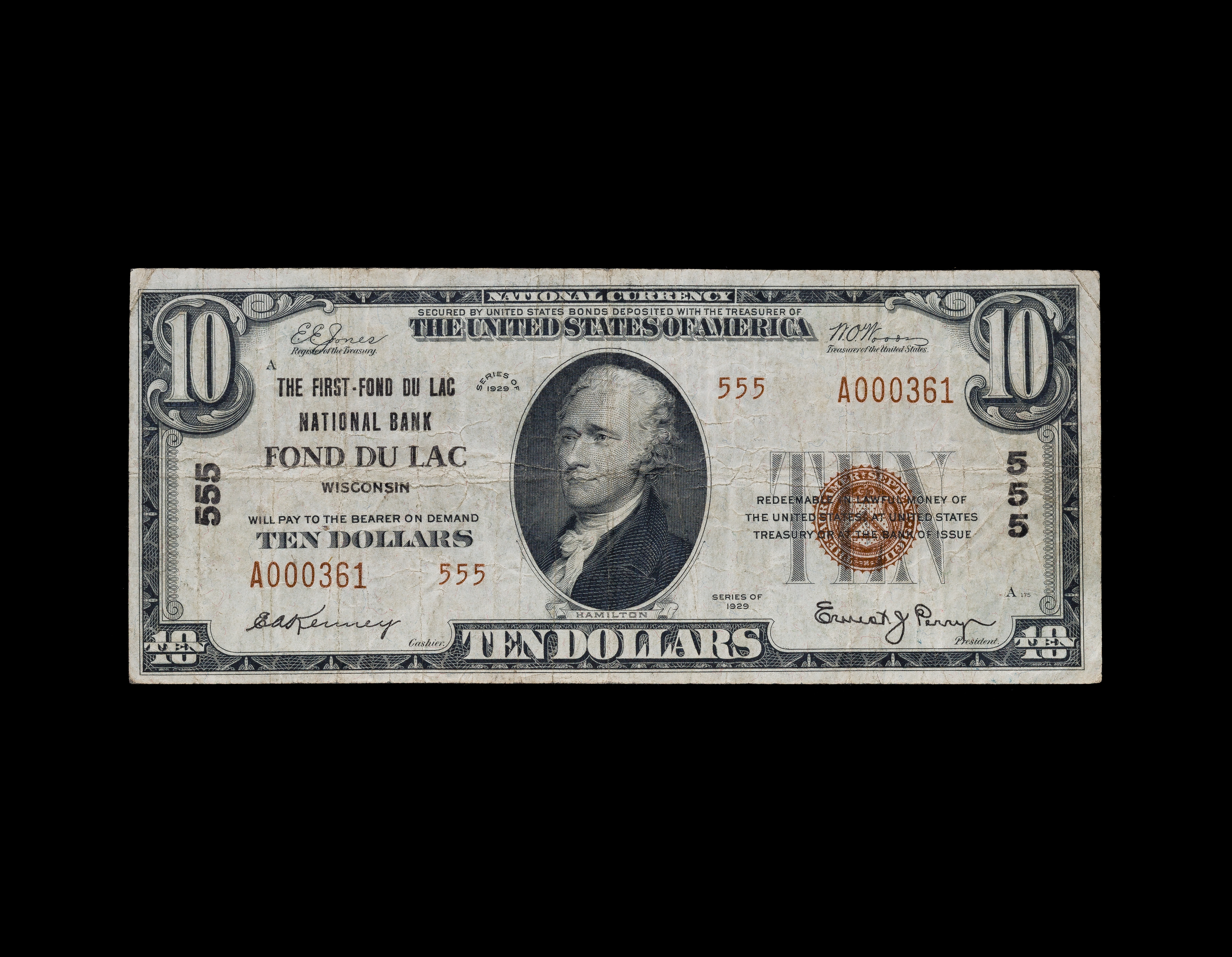 1929 $10 Fond Du Lac Wisconsin National Bank