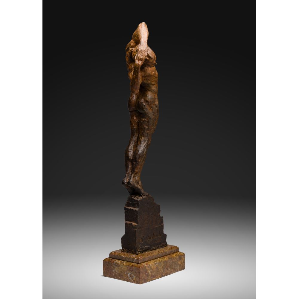 2001, signed on lower back and #9/60, a nude posed in a difficult posture to the side, having a hard stone base
