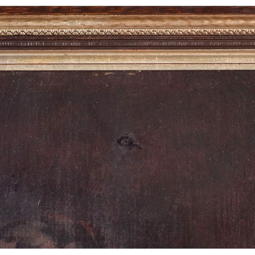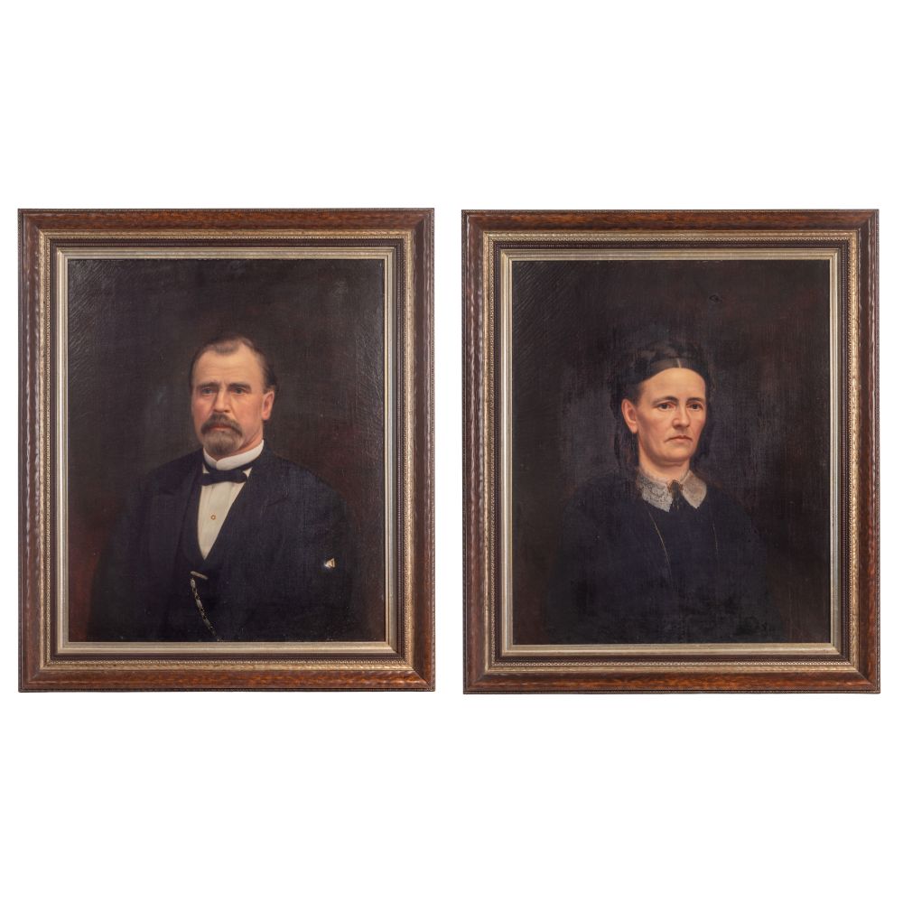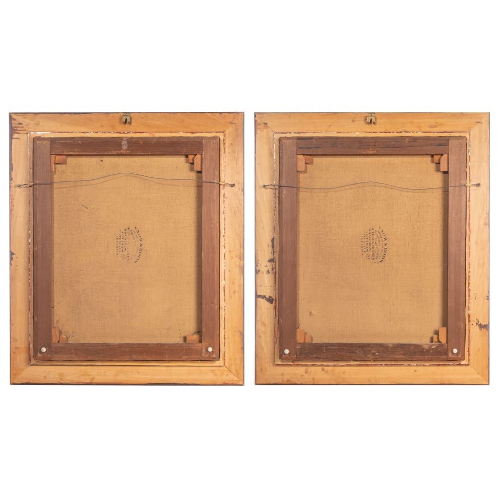 Condition: both having punctures, the woman's puncture repaired and in-painted, the man's canvas loose in frame and showing frame friction, occasional specks of white house paint, light dirt accumulation, frames having light wear, both having punctures, the woman's puncture repaired and in-painted, the man's canvas loose in frame and showing frame friction, occasional specks of white house paint, light dirt accumulation, frames having light wear