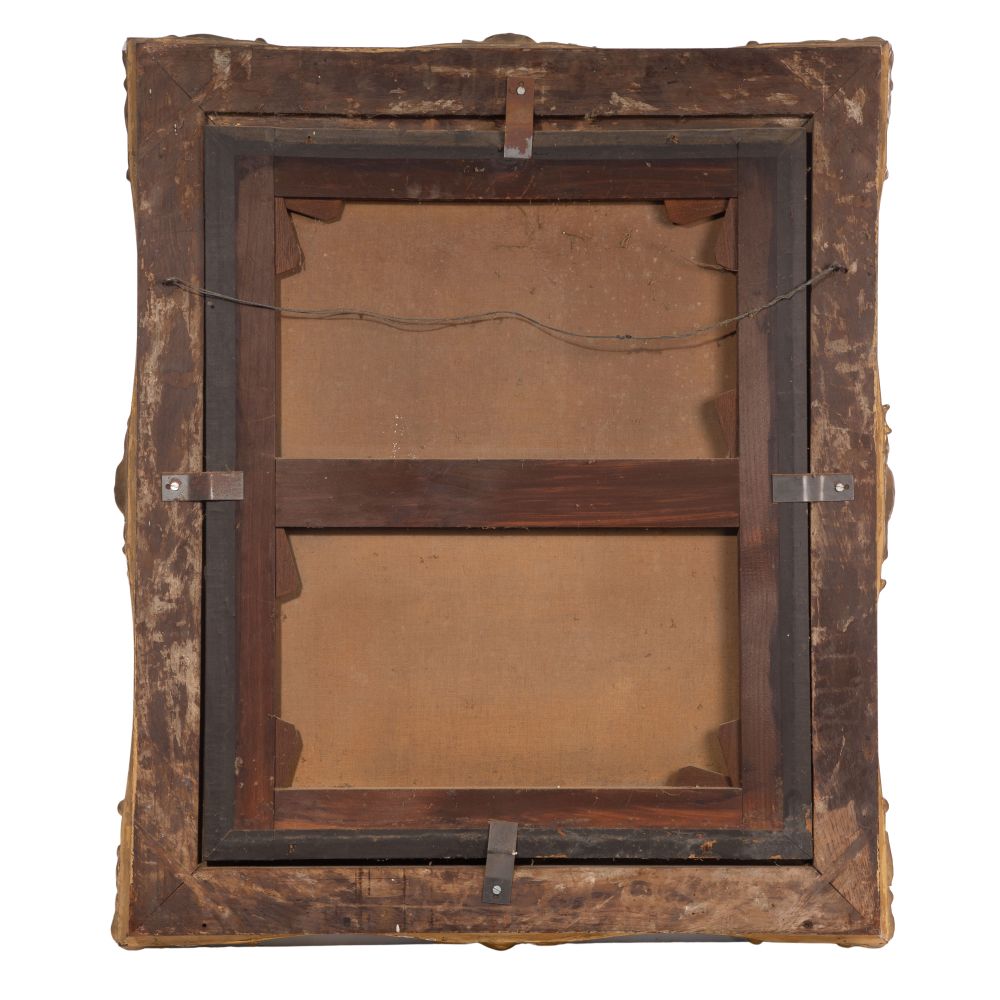 Condition: no damage to artwork noted, stretcher having slipped in frame, moderate dirt accumulation, frame having moderate wear and chips, no damage to artwork noted, stretcher having slipped in frame, moderate dirt accumulation, frame having moderate wear and chips