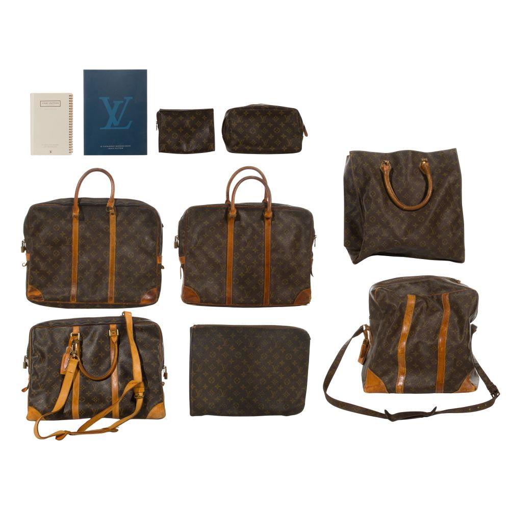 (10) items including (3) Porto Voyage briefcases, a Marceau bag, a documents Poche, a Sac Plat tote, (2) Toiletries bags with one having a coin purse, a catalog and a 2008 calendar, all having monogram leather, some having Vachetta leather straps, rolled handles and sectioned interiors