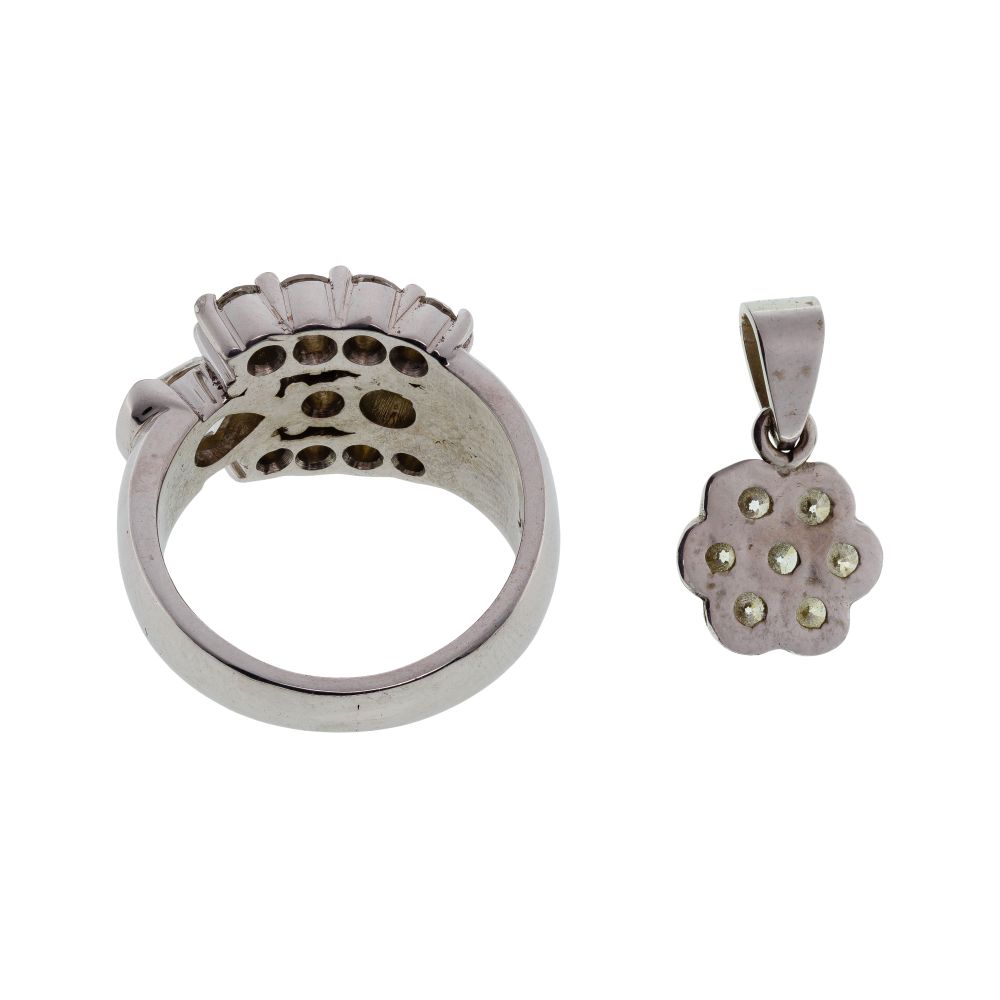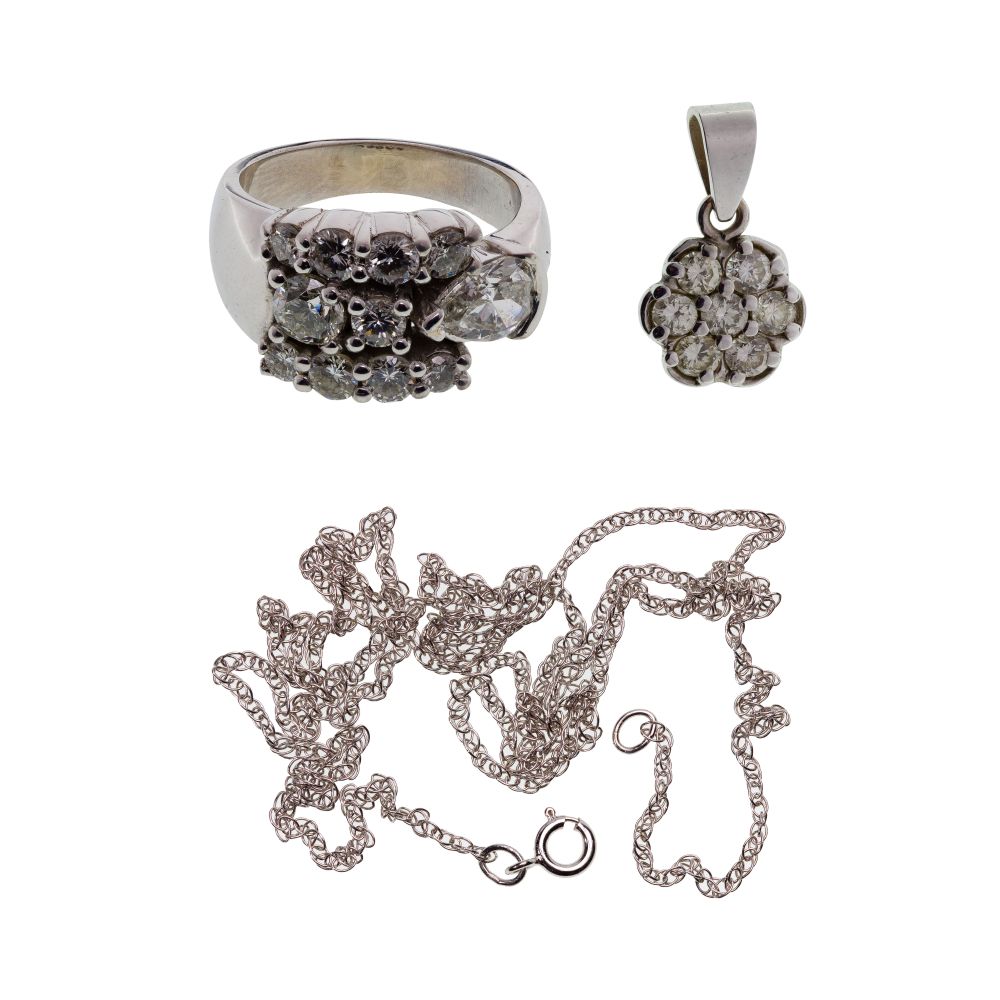 LOT #333 - 14k White Gold and Diamond Ring and Pendant on Necklace