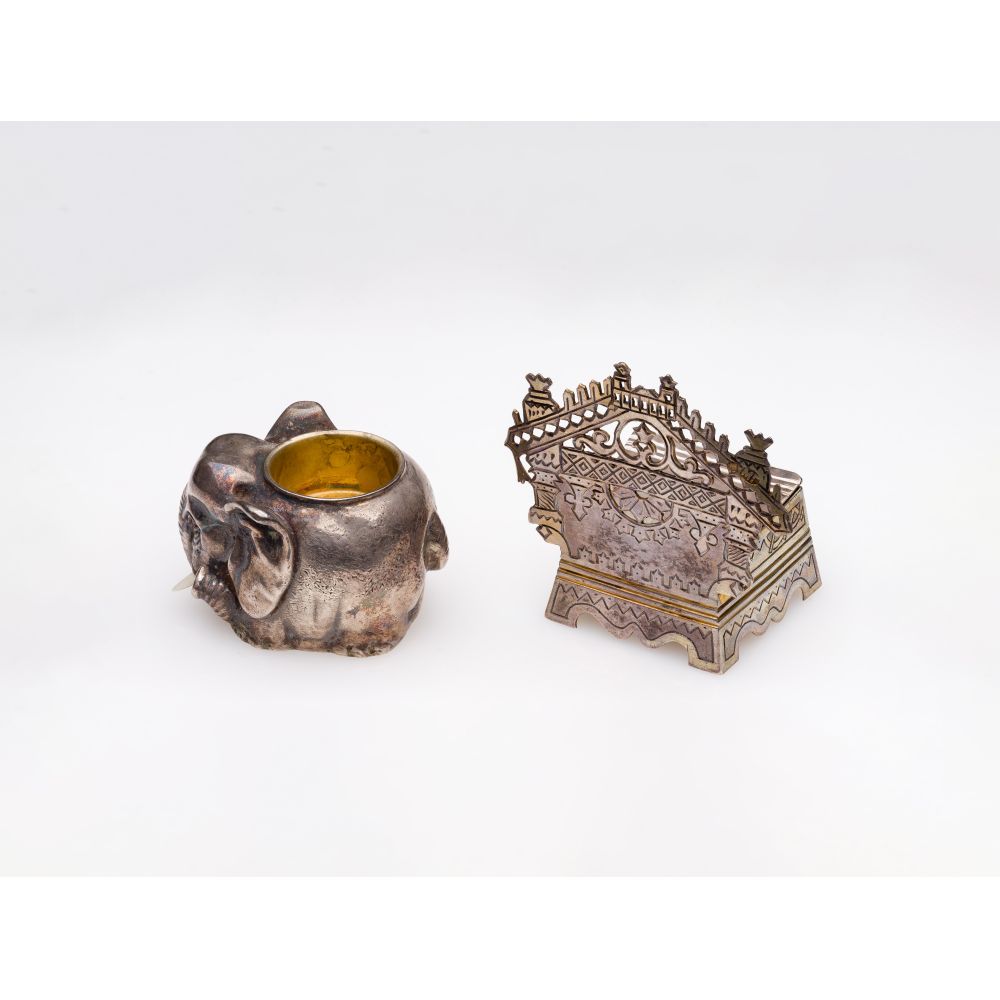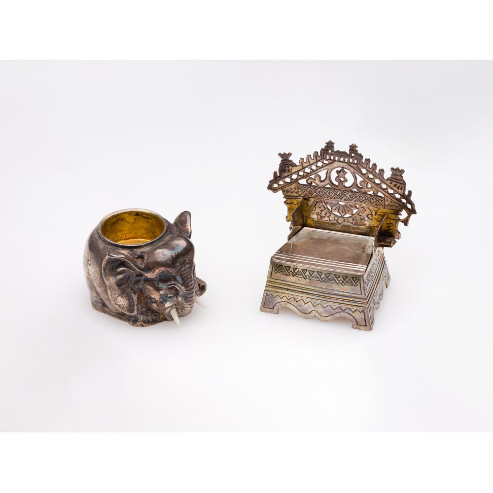 (2) items including a Victor Savinkov throne style (marked “MG” / “B.C 1888” / “84”) and elephant form (marked “I.P.” / “88”)