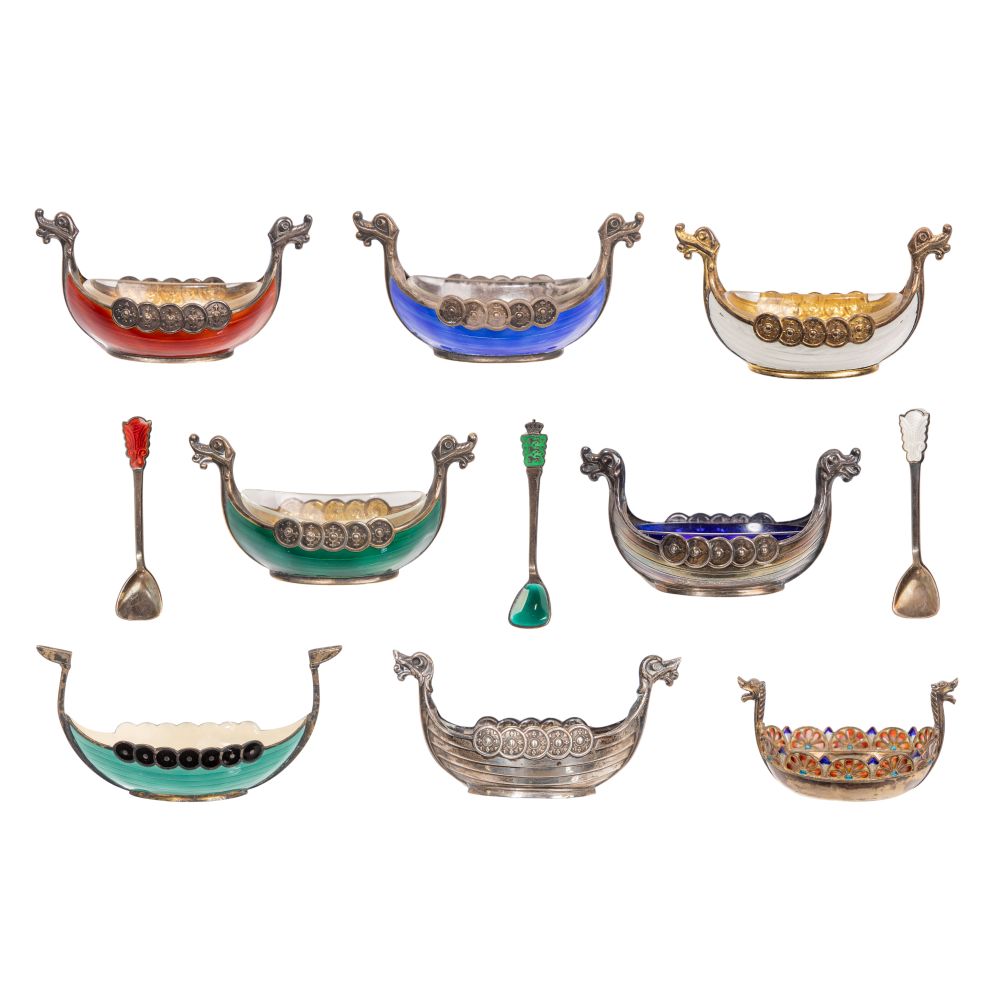 Norwegian Silver Viking Ship Salt Cellar Assortment