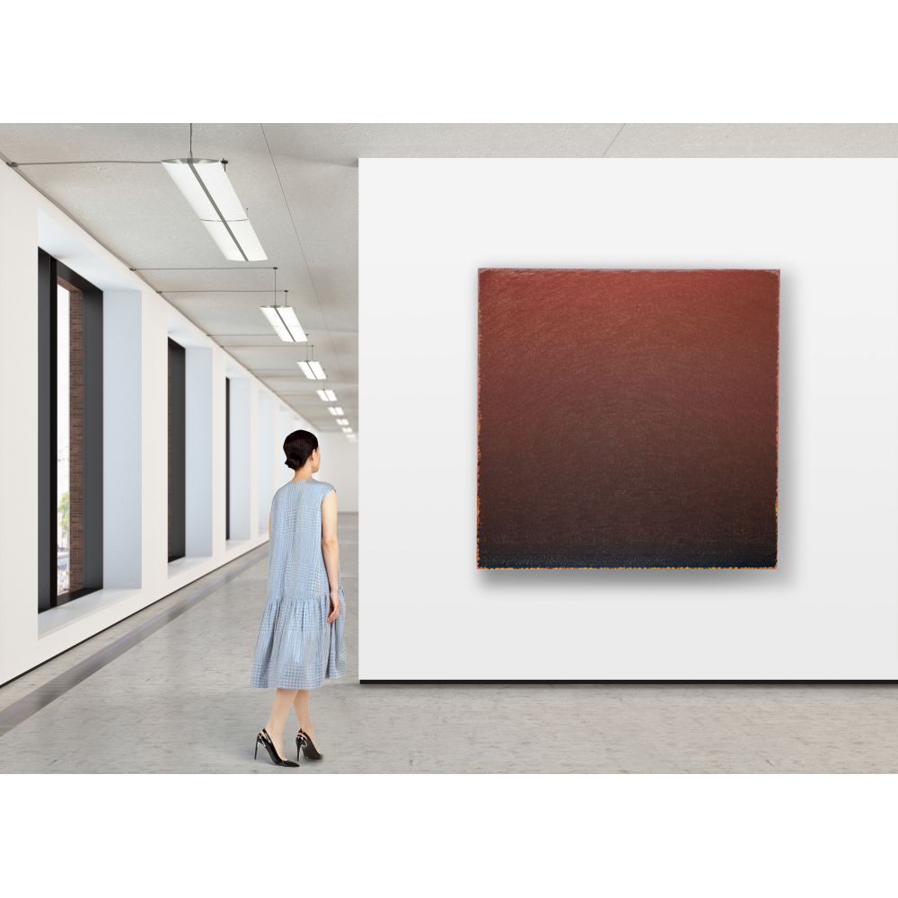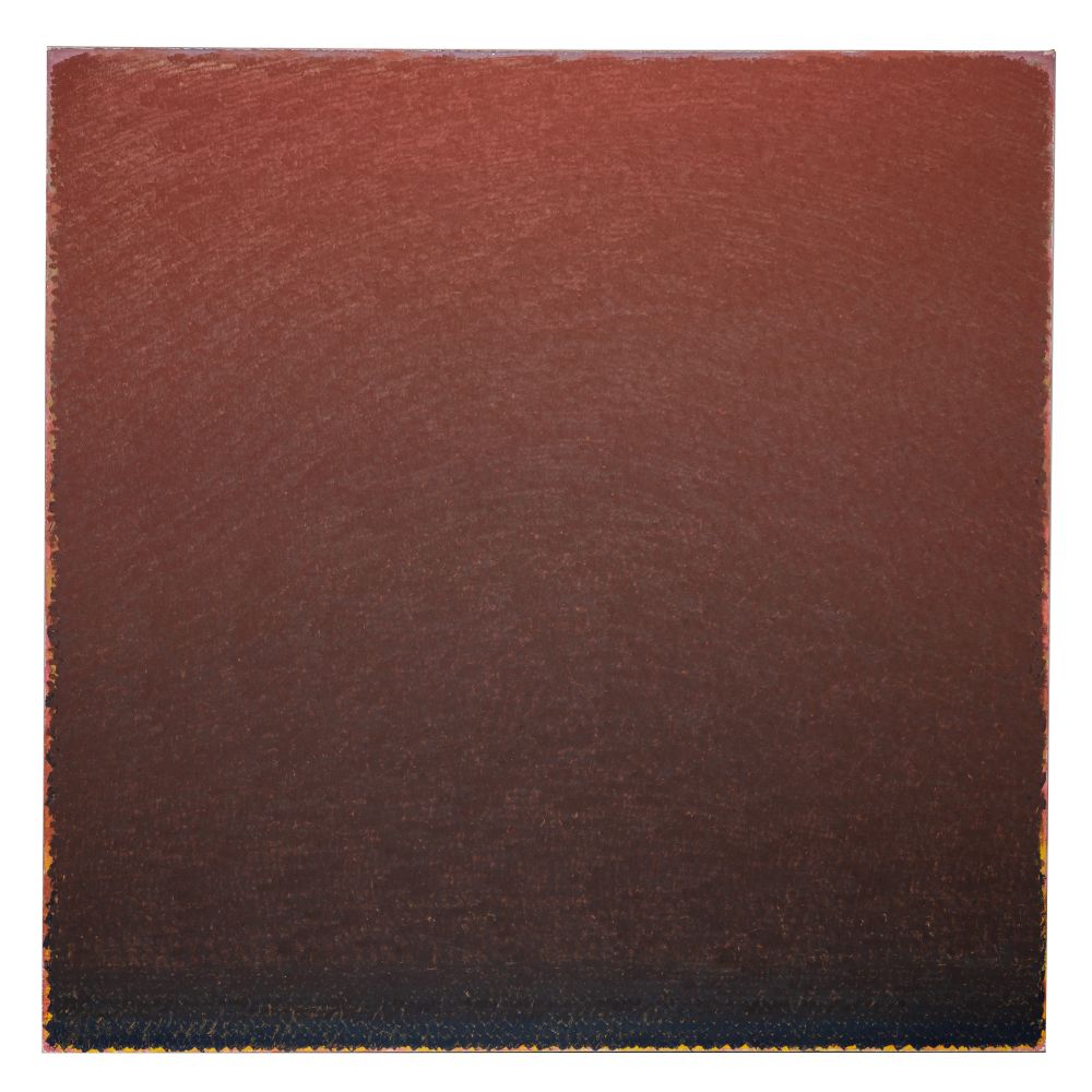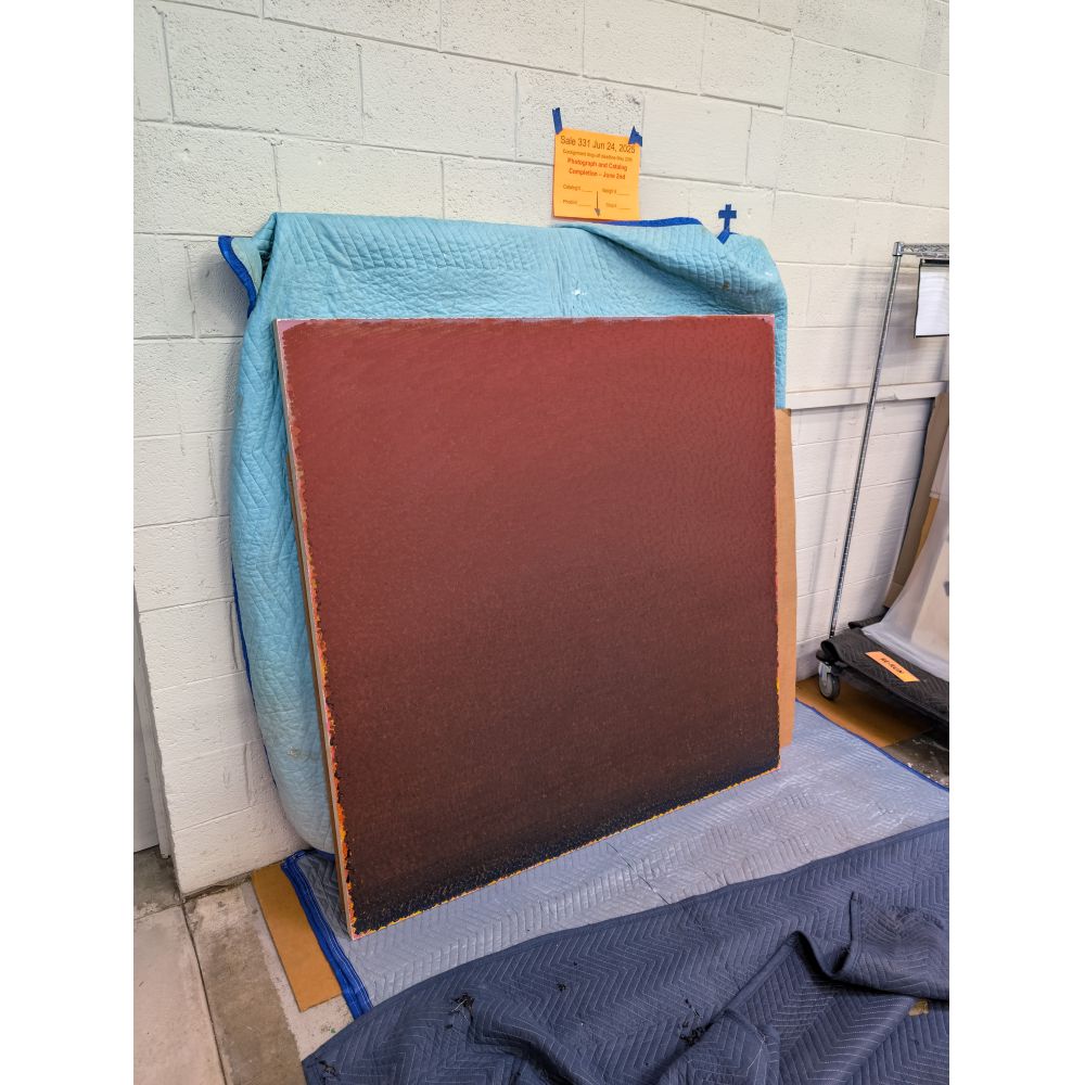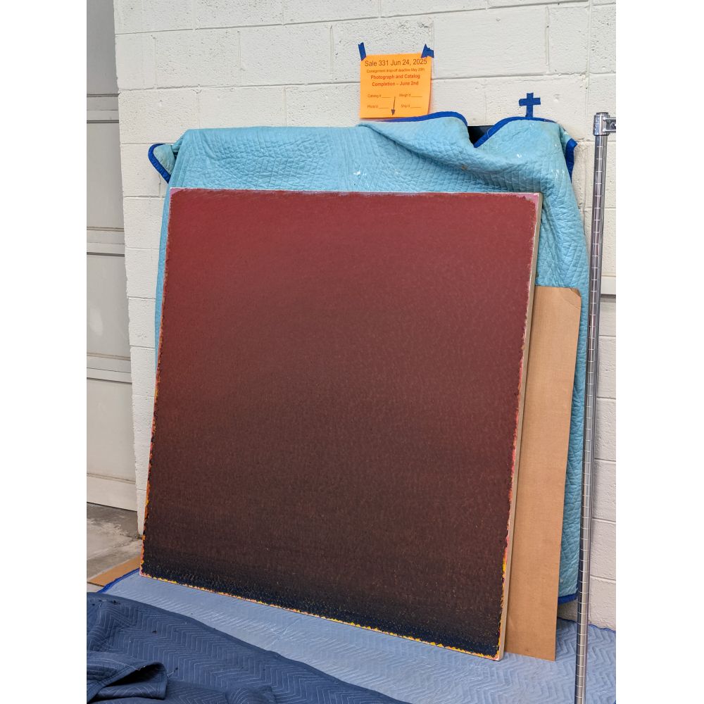 1983, signed and titled verso, from the artists series Field Color, a gradient red to purple to blue, having areas of yellow-orange on edges