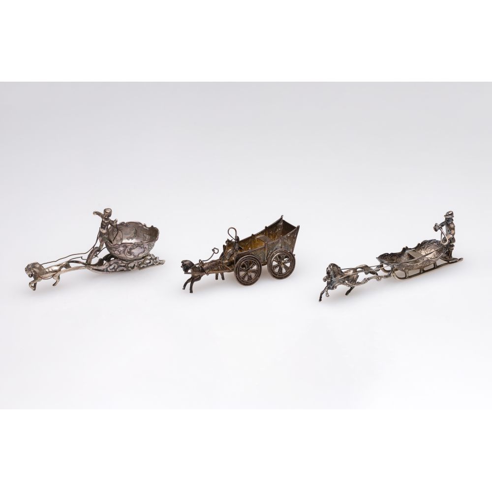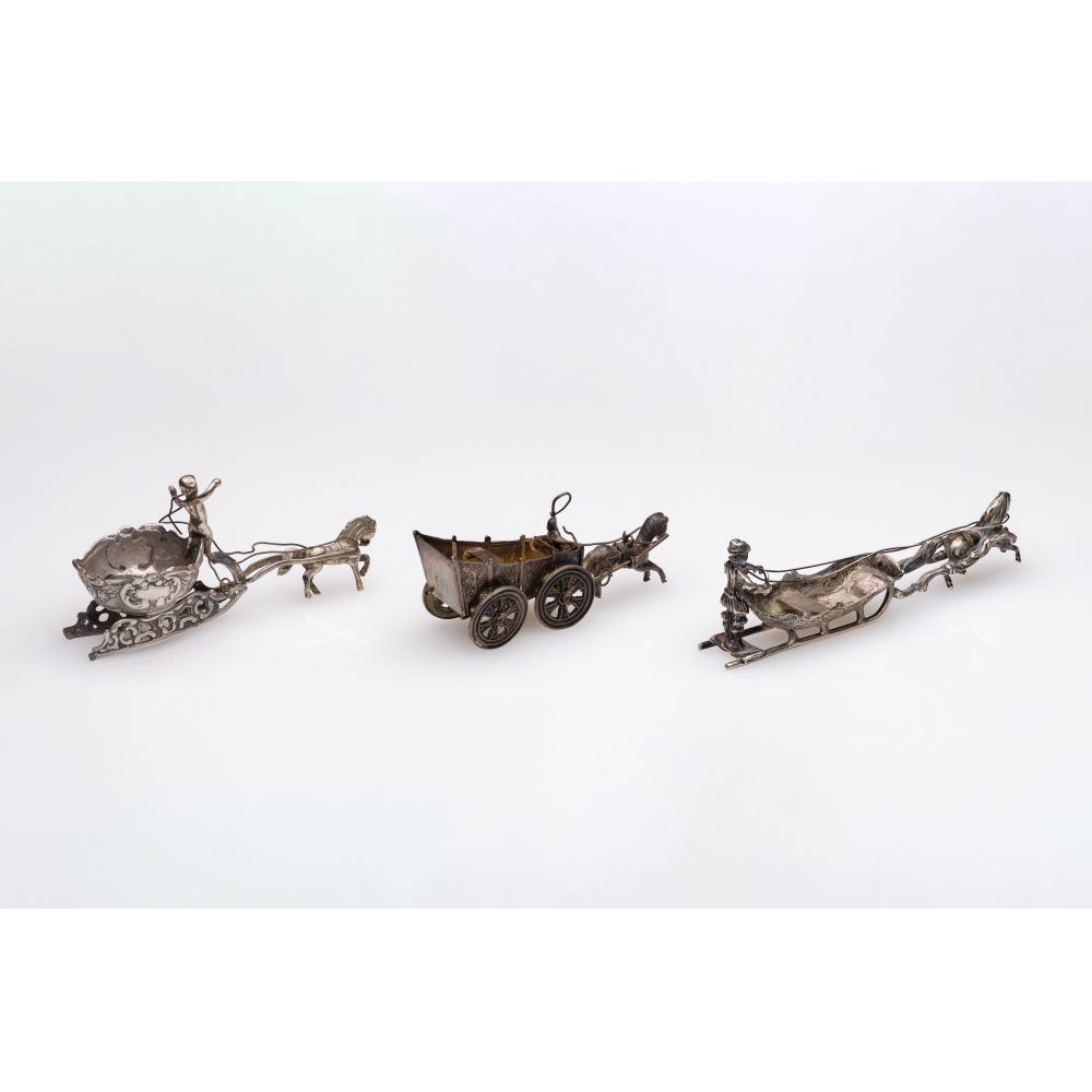 (3) items, all having horse and sleighs (one marked “Germany” “800”, other two unmarked 0.875 silver)