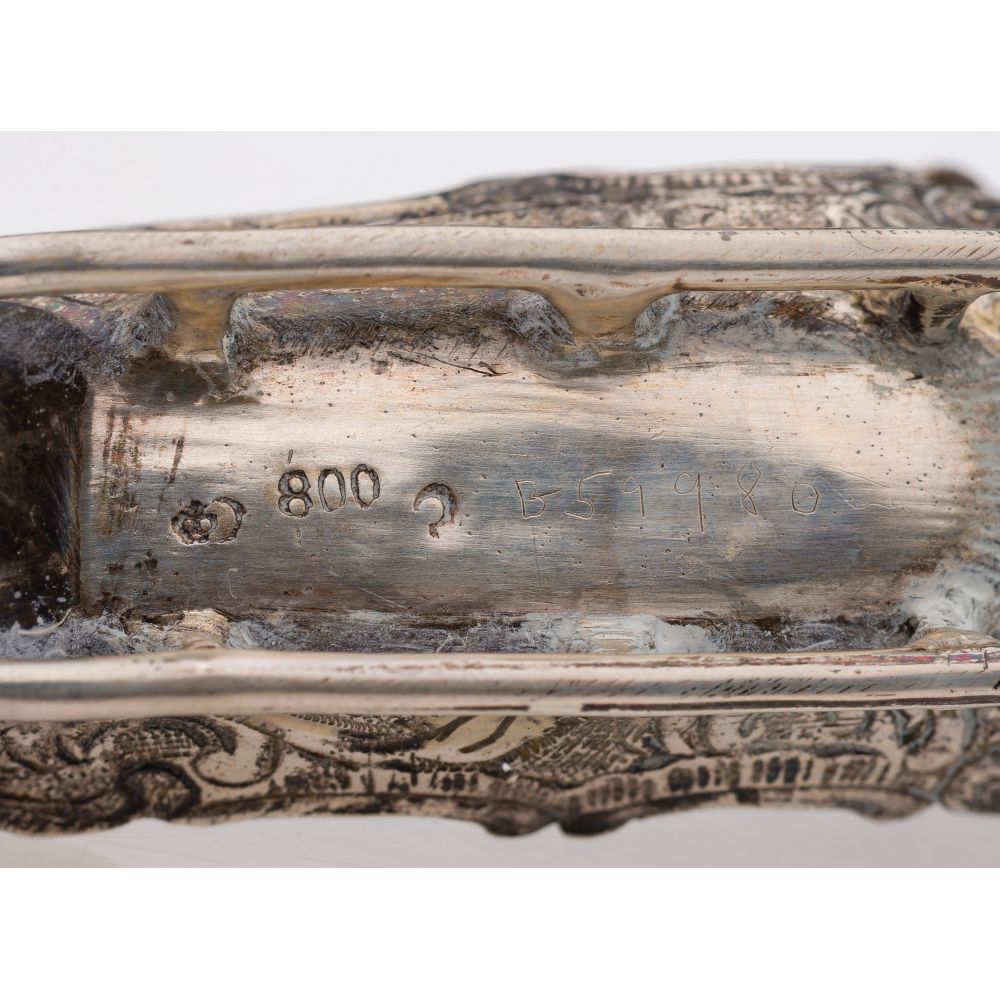 Weight: .830 silver: 2.25 ozt., .800 silver: 1.16 ozt. (total, 0.875 shown as 0.830)