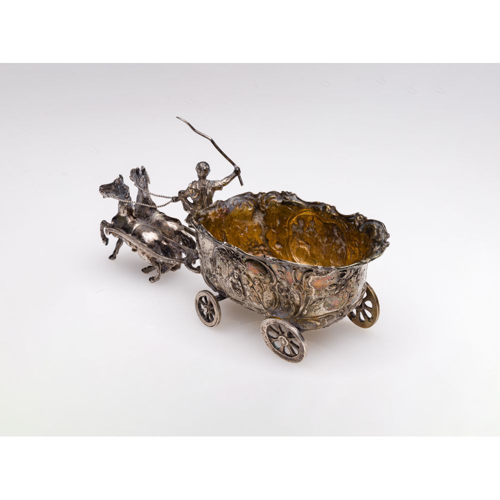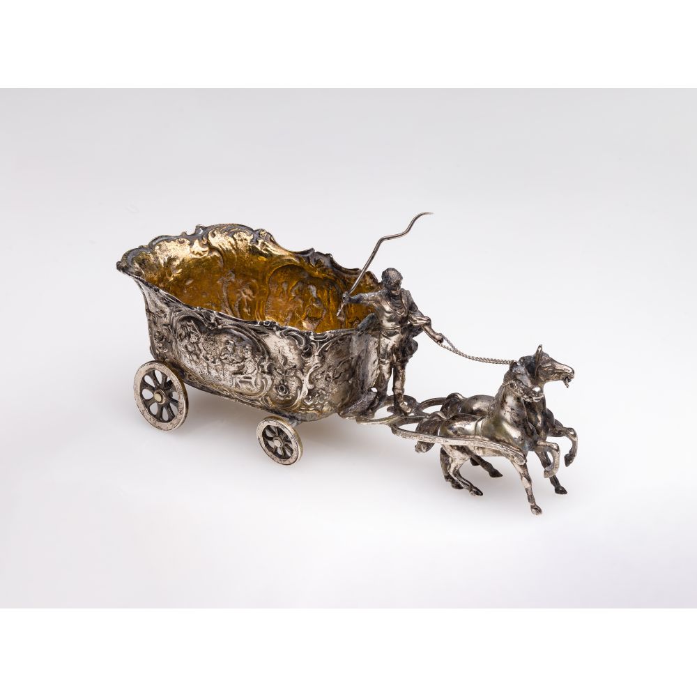 Having a soldier driving two horses pulling a wagon with moving wheels (marked “800”)