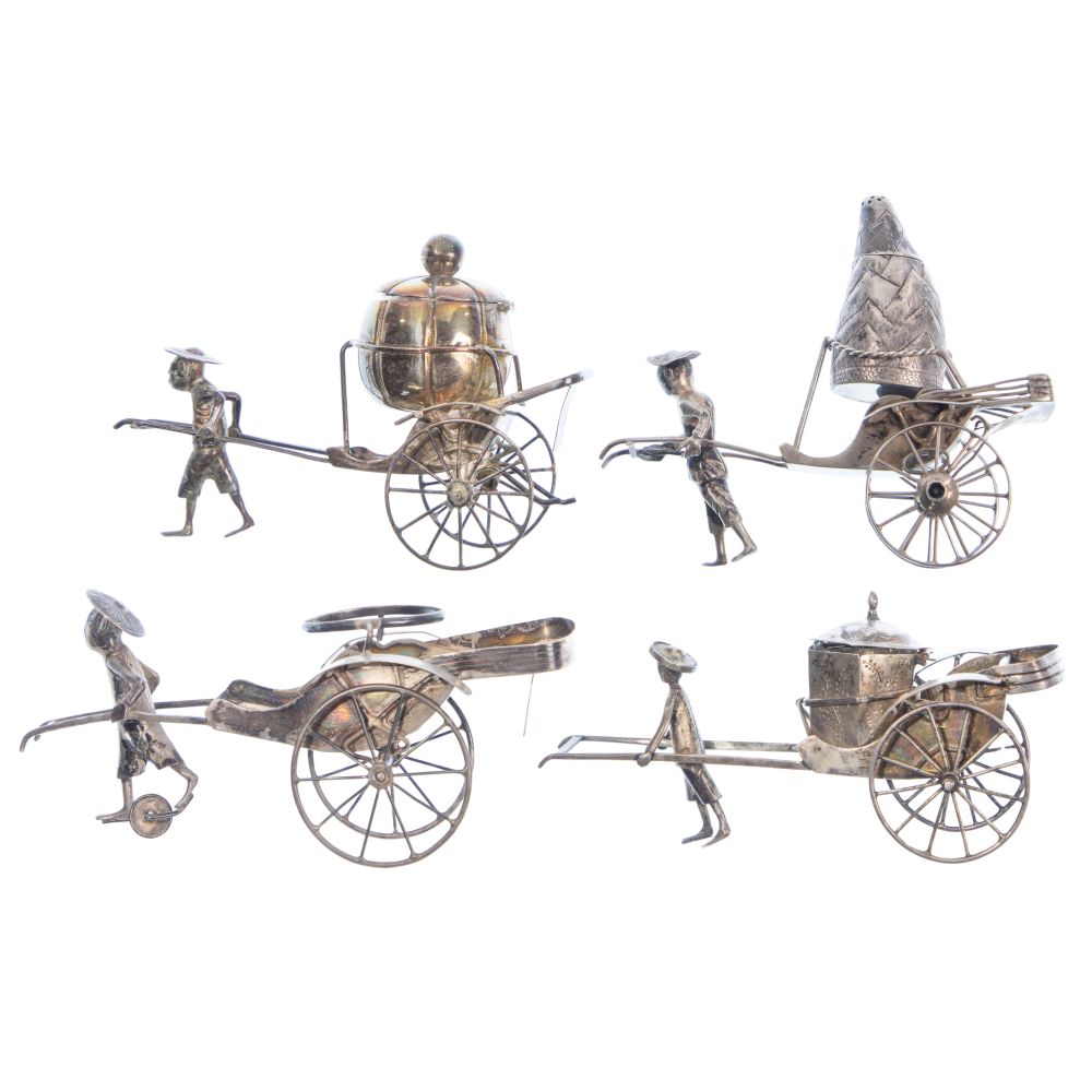 LOT #258 - Chinese Silver Rickshaw Condiment Caddies