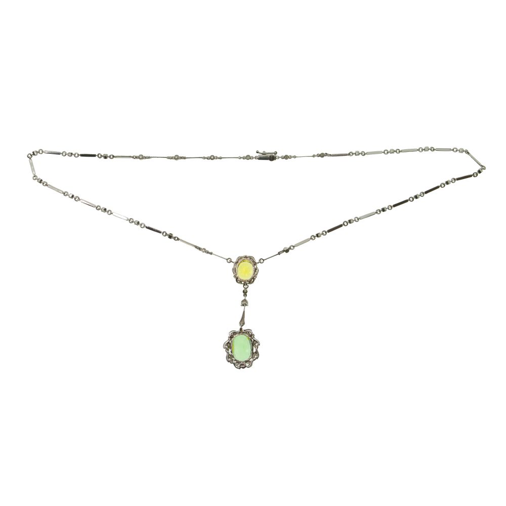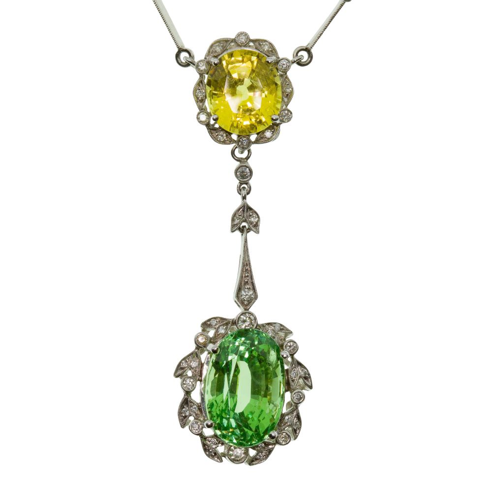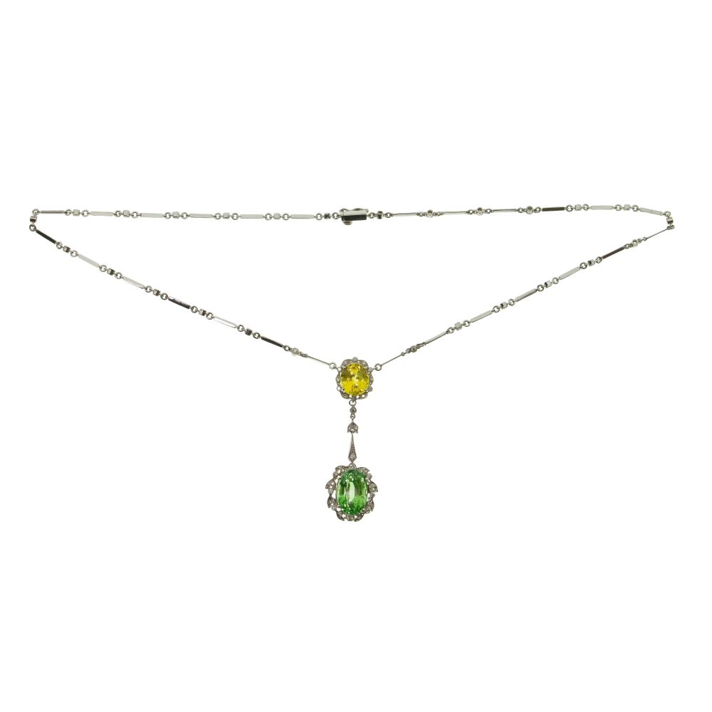 LOT #327 - 18k White Gold, Green Garnet, Yellow Sapphire and Diamond Necklace