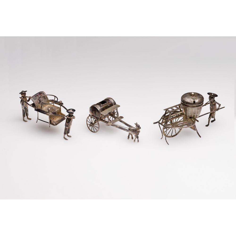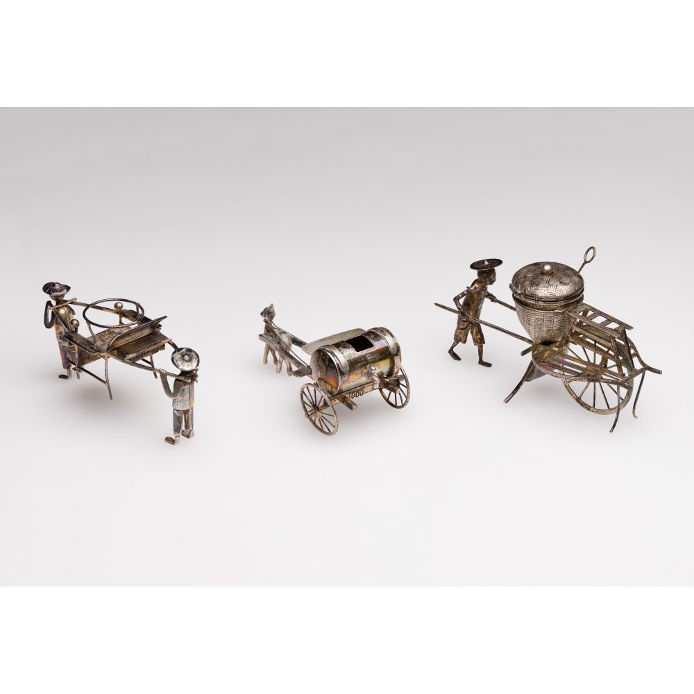 (3) items all having figures and carts (unmarked .900)