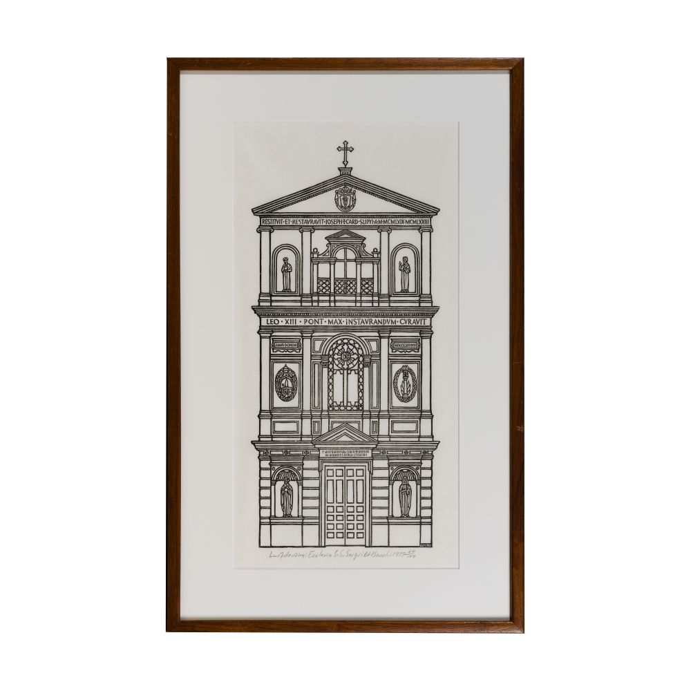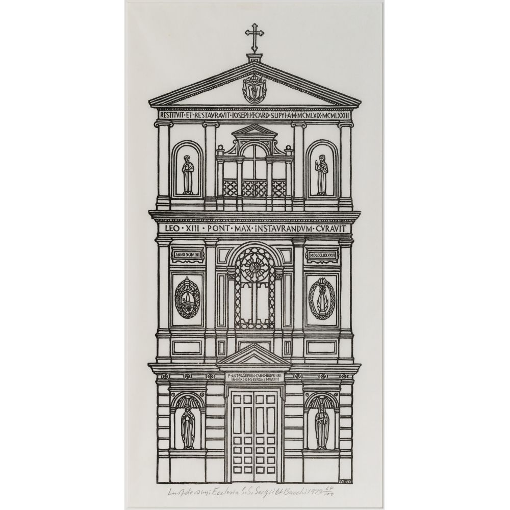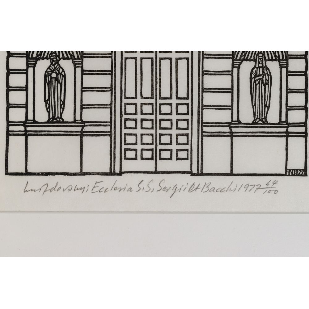 LOT #158 - Jacques Hnizdovsky (Ukrainian / American, 1915-1985) “Ecclesia S. S. Sergri et Bacchi” Woodcut