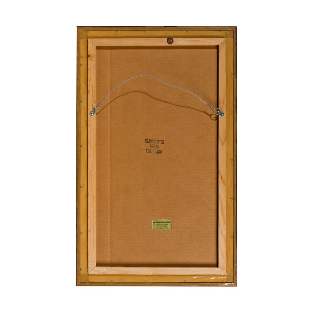 Dimensions: Height: 19 3/4 inches, Width: 10 inches (sight); Frame Height: 25 1/2 inches, Frame Width: 16 inches