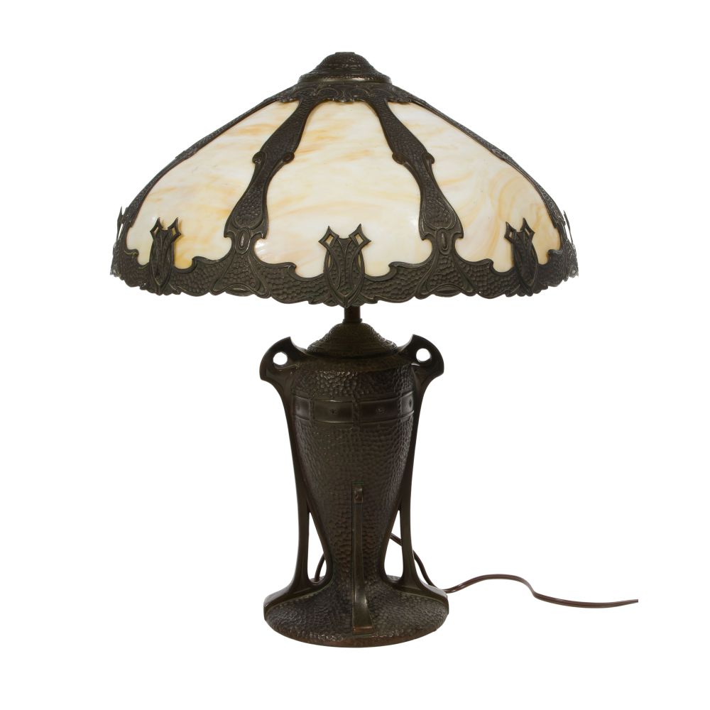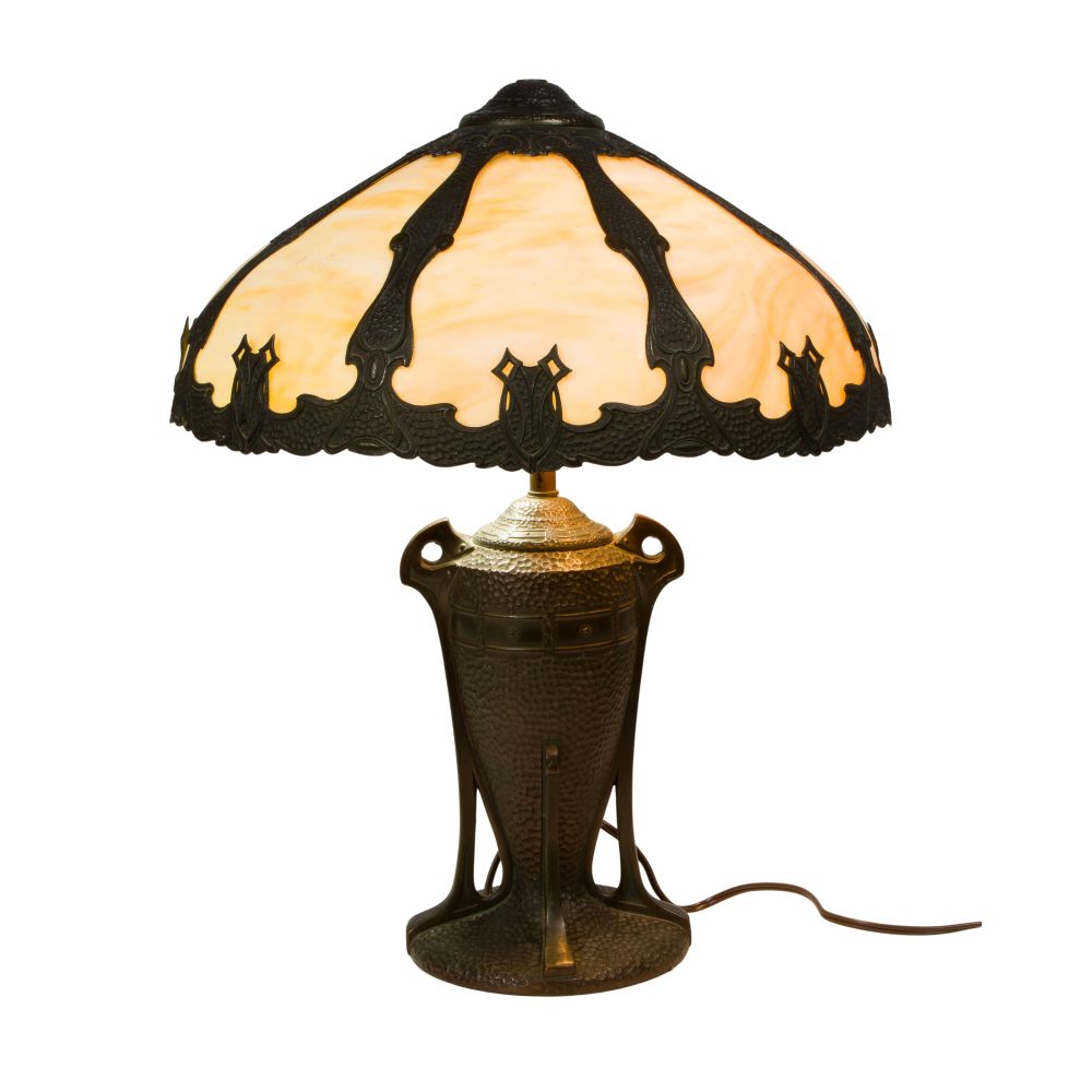 LOT #319 - Arts and Craft Style Slag Glass Shade Table Lamp