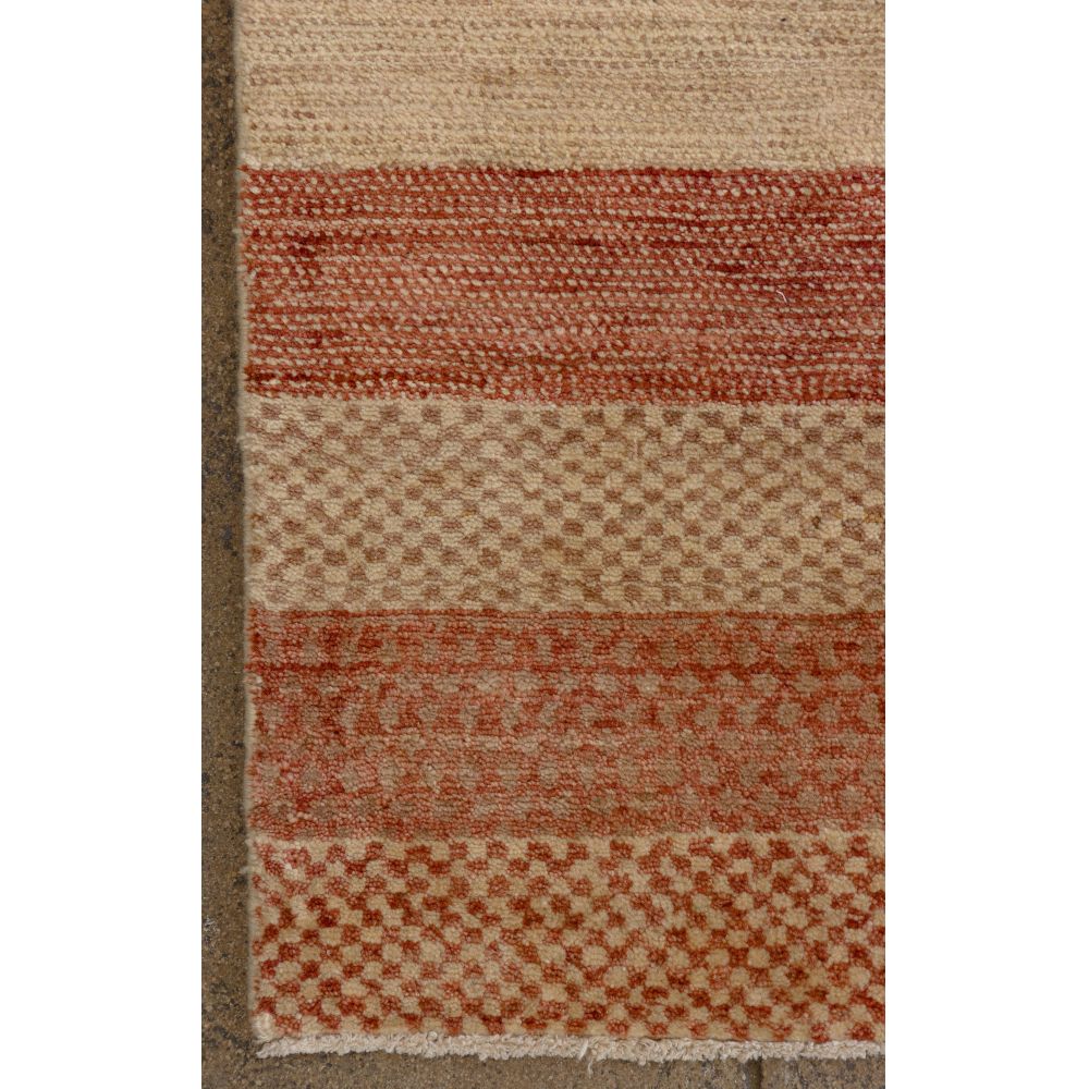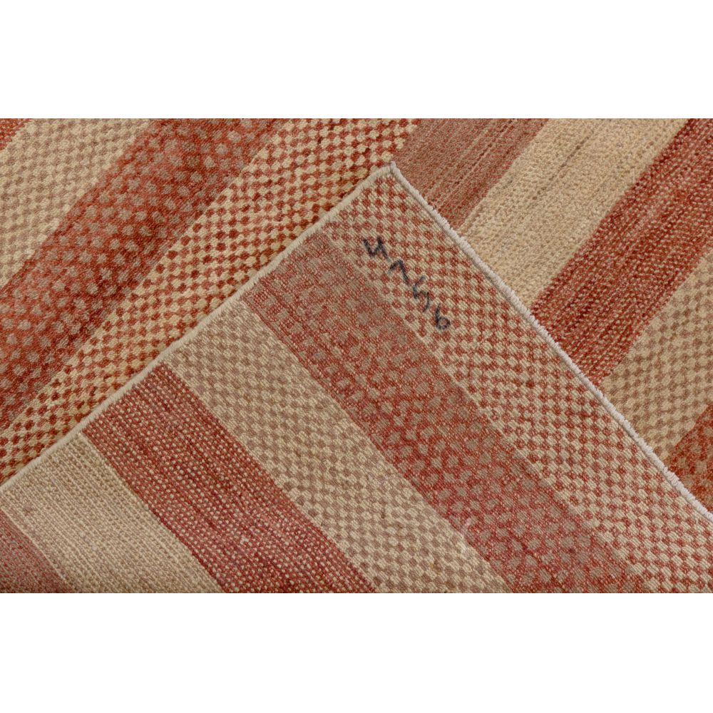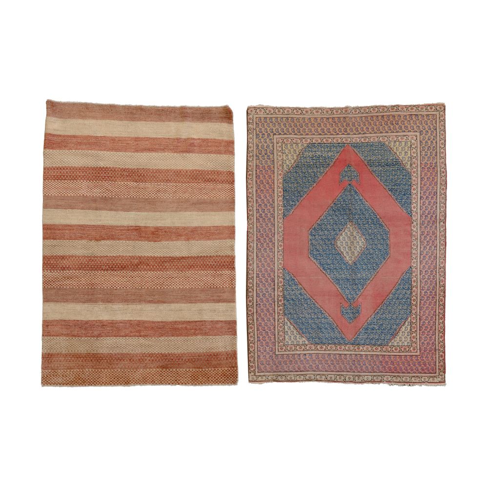 (2) items including a Hamadan style in an abstract geometric design with center medallion in hues of salmon, blue and black on a cream field and a modern wool rug in a stripe pattern in hues of cream and rust (6 ft. 2 in. x 4 ft. 2 in.)