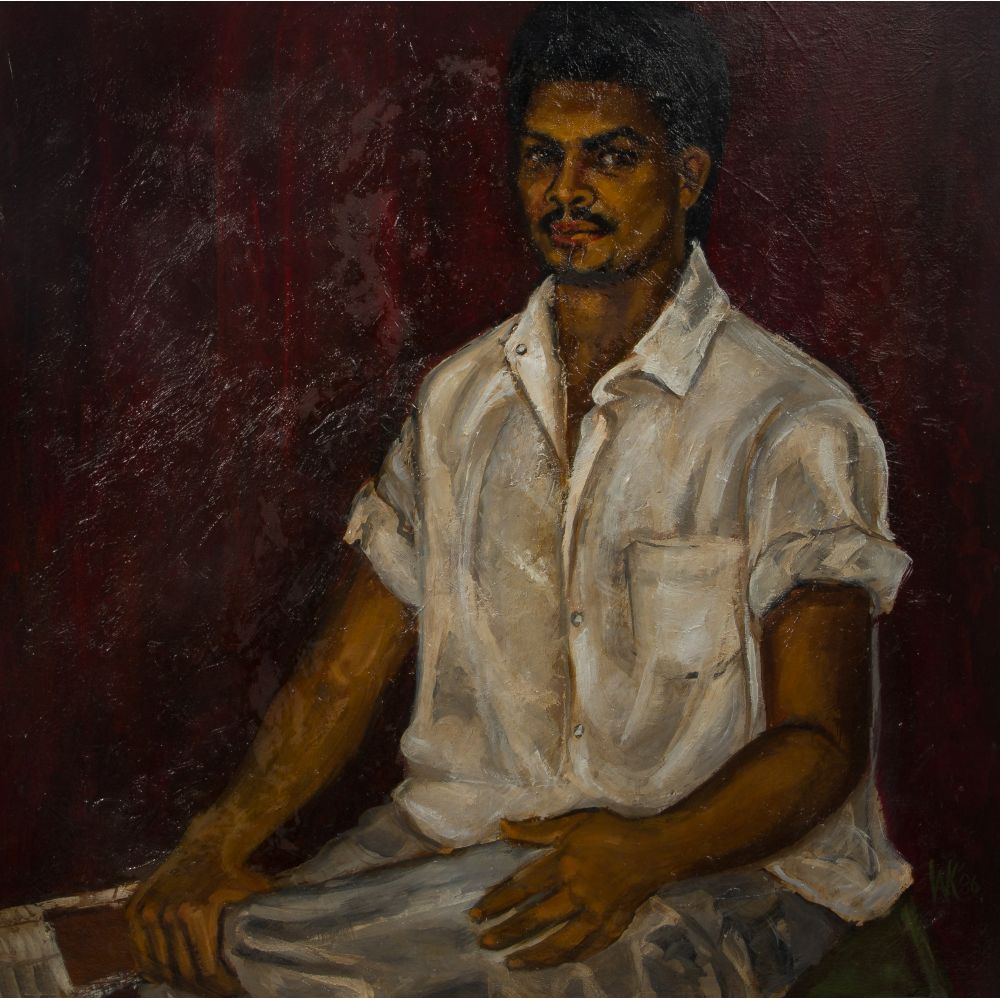 1986, initialed “WAK” and dated lower right, a portrait of a young man, in a gold-tone accented wood frame