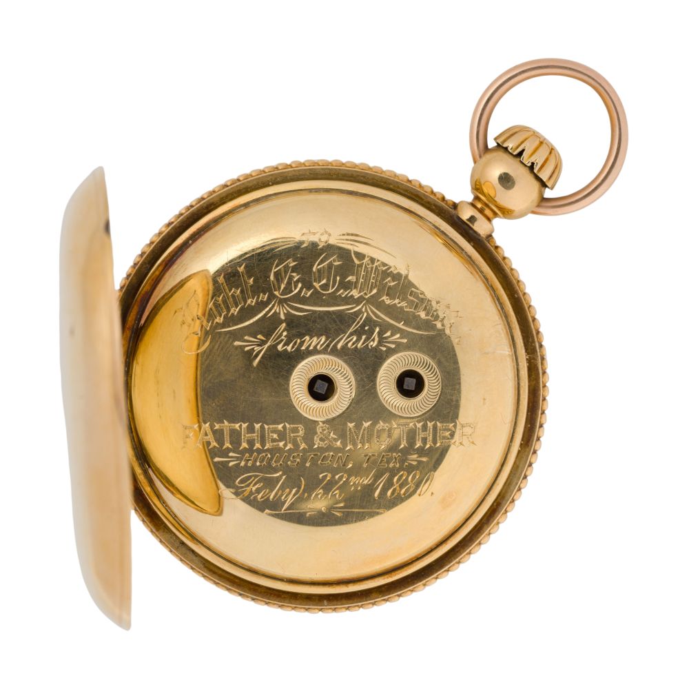 LOT #593 - James Hoddell & Co. 18k Yellow Gold Hunter Case Pocket Watch