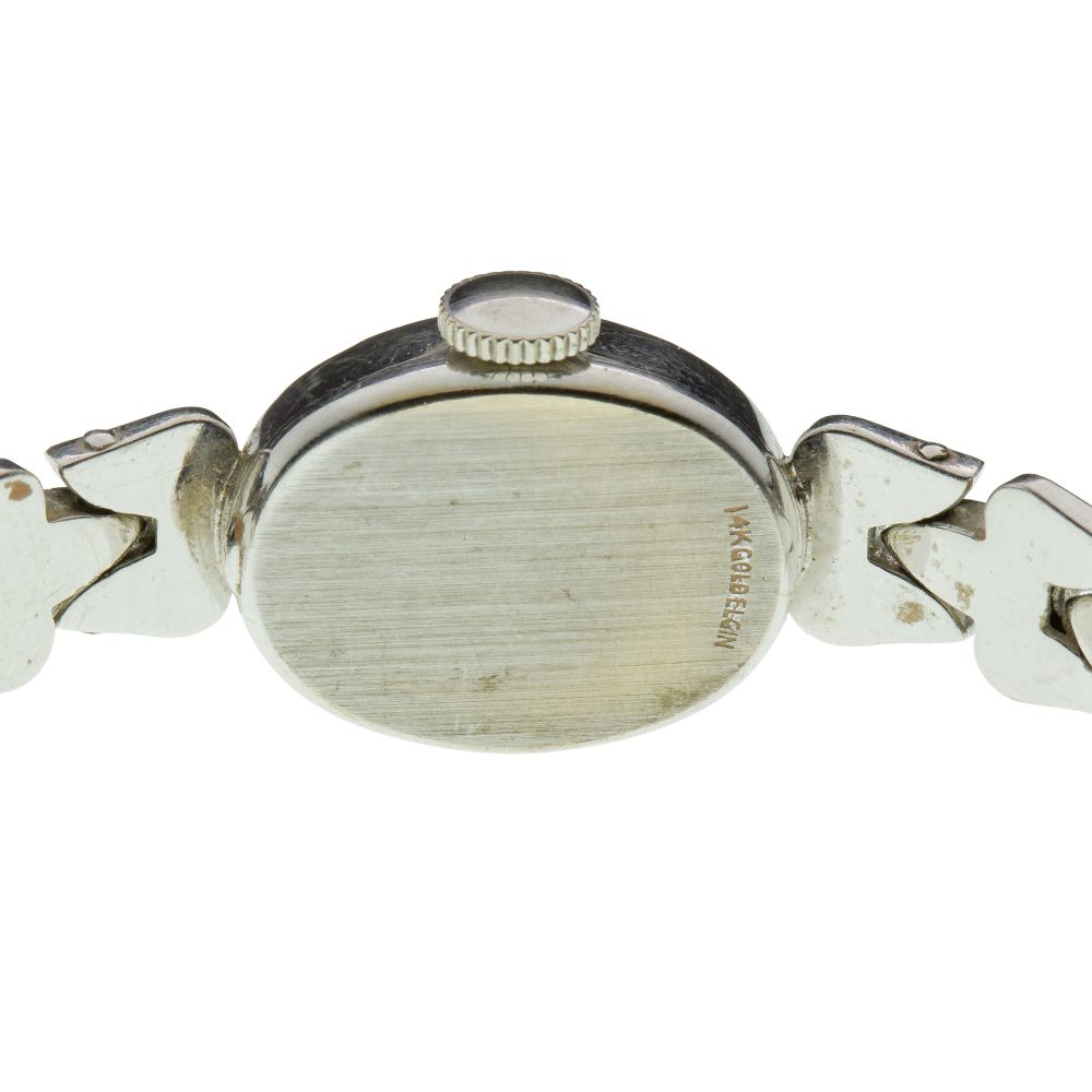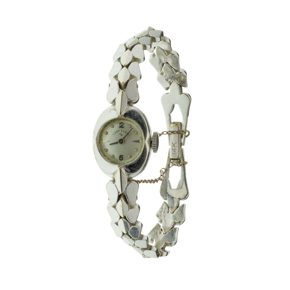 LOT #545 - Lady Elgin 14k White Gold Case and Band Wristwatch