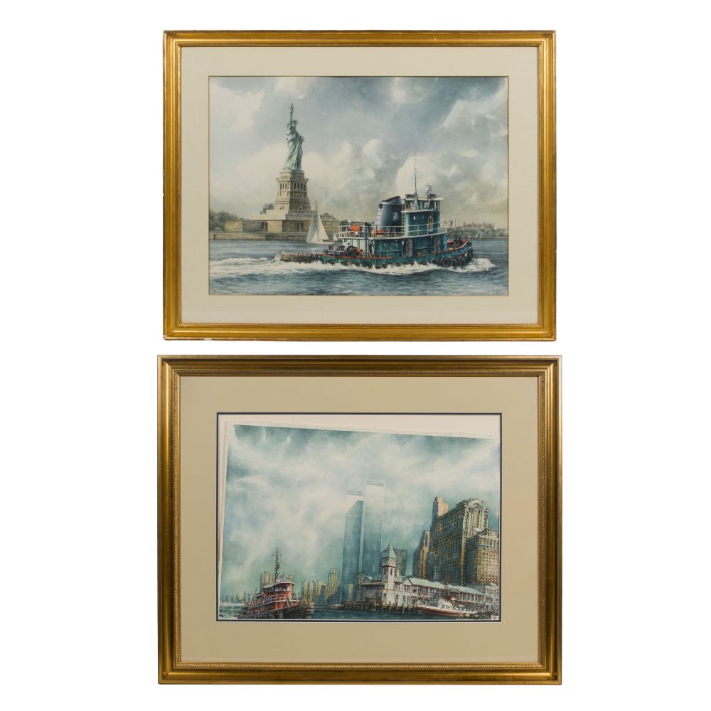 Summer Online Auction | LOT #131 - Keith Miller (Canadian, b.1949) New York Tug Boat Watercolors