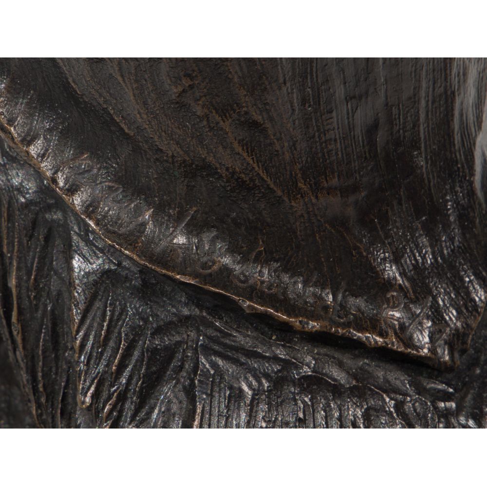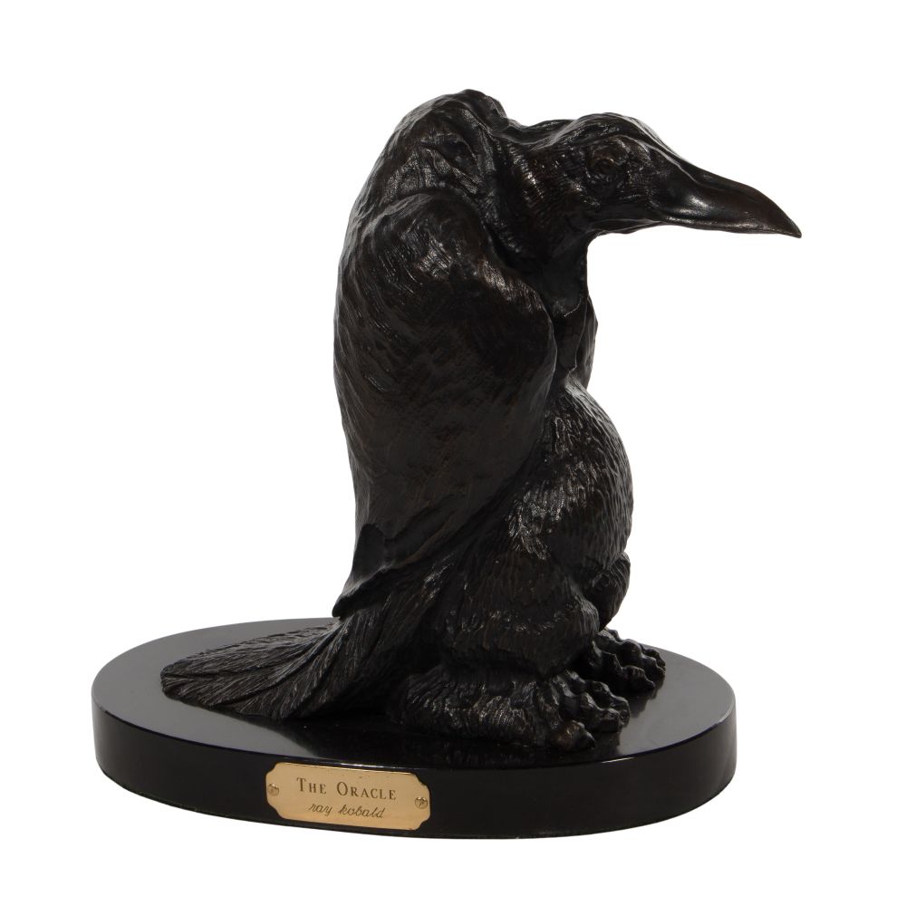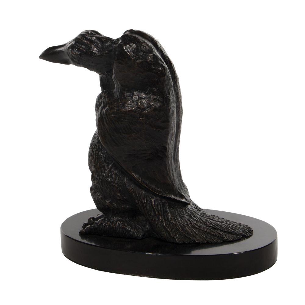 Undated, signed on lower edge of wing and #2/7, depicting a raven on a hard stone oval base with title plaque