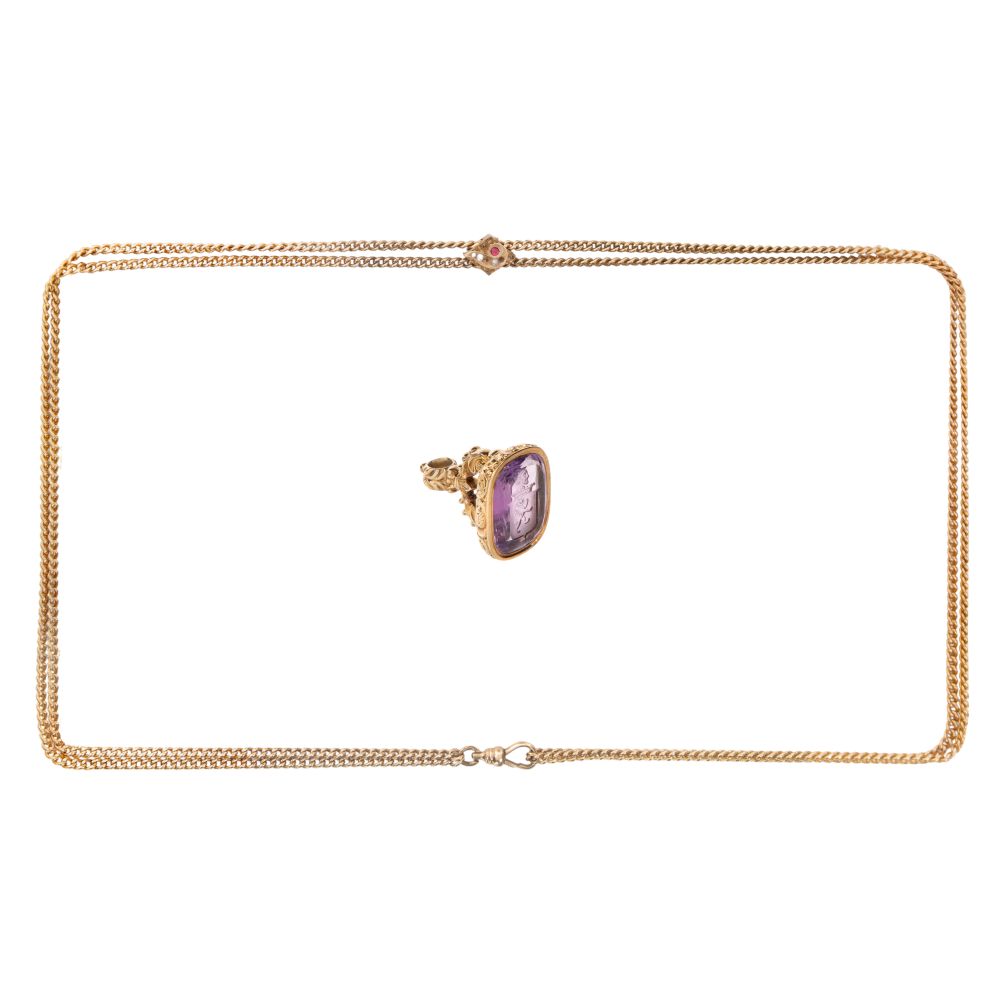 LOT #542 - 14k Yellow Gold Watch Fob and 10k Yellow Gold Pocket Watch Chain