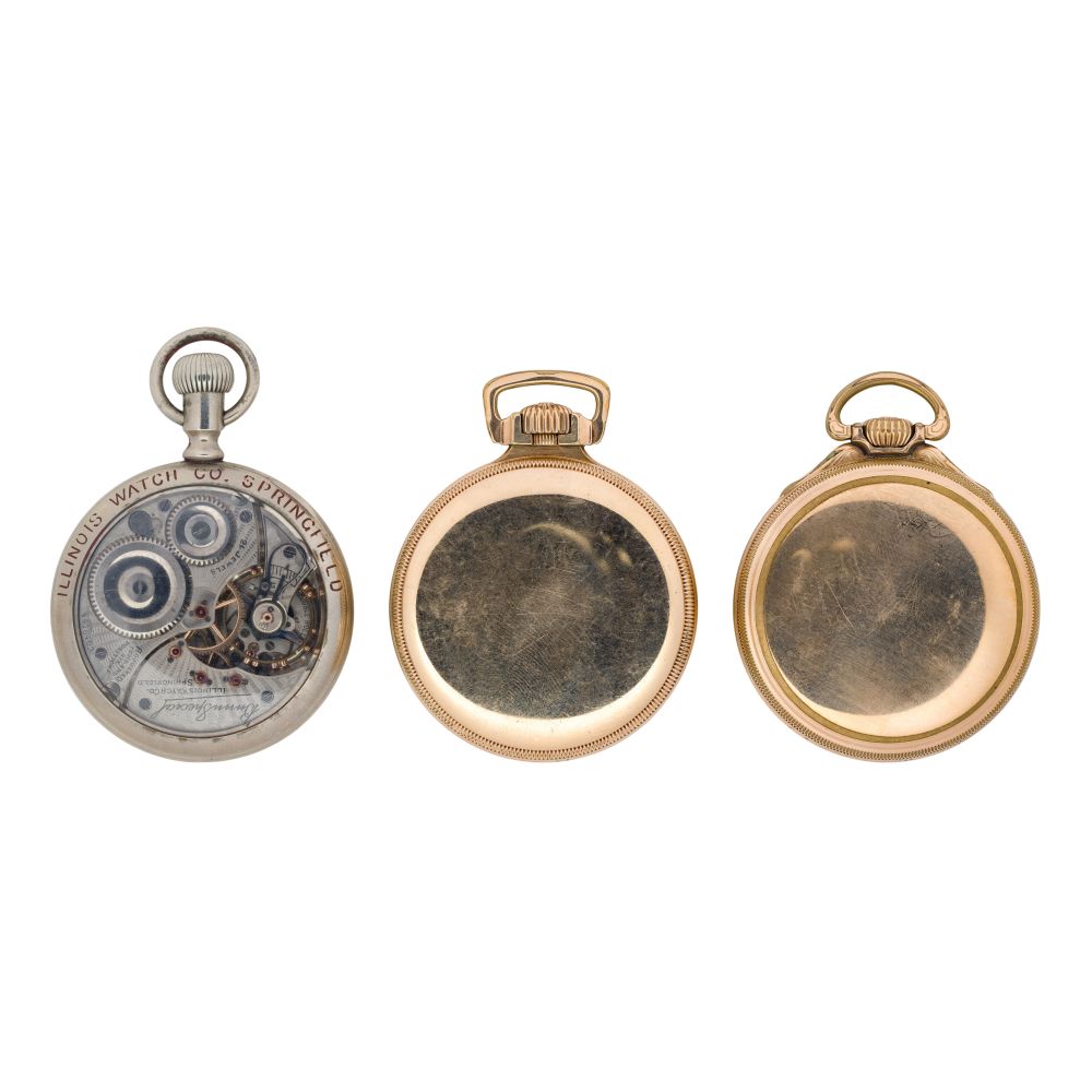 (3) items including a silver-tone serial #4418402 dating to c.1923, 21-jewel movement, lever set, a gold-filled serial #5000643 dating to c.1928, 21-jewel movement, lever set and a gold-filled serial #5473399 dating to c.1931, 21-jewel movement, lever set