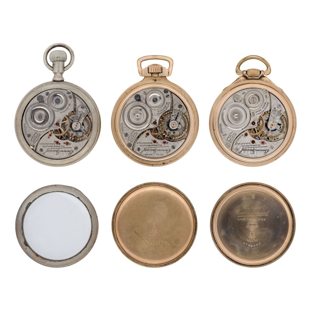 Illinois Watch Co. "Bunn Special" Railroad Open Face Pocket Watch Assortment