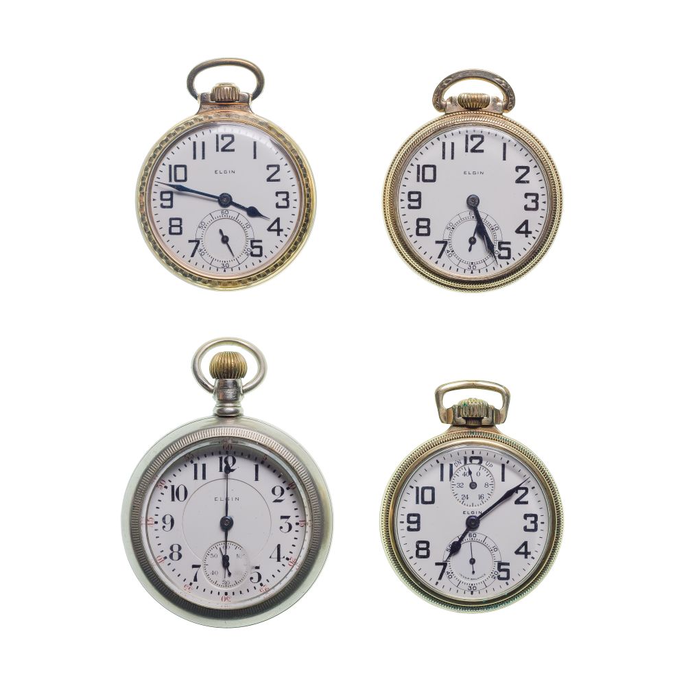 LOT #582 - Elgin Railroad Open Face Pocket Watch Assortment